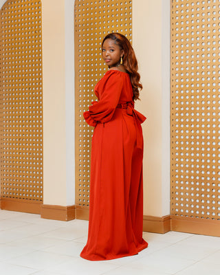 Asumbi Full Set (Wrap Top+Palazzo)- Burnt Orange/Fire Brown