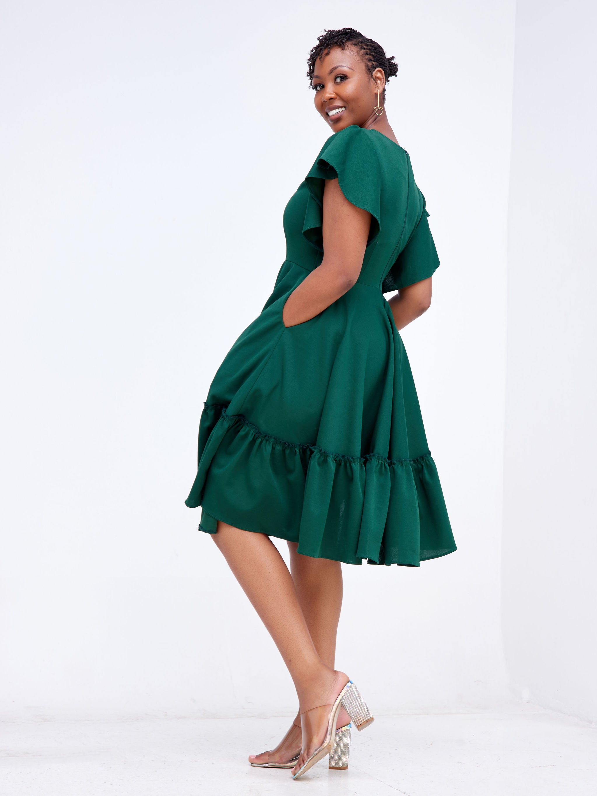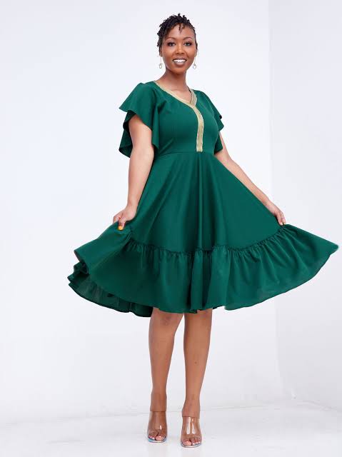 • The Urudi dress is an everyday staple, the stretchy fabric has a body hugging fit that enhances your perfect curves, the knee length makes the dress perfect for going to the office, party, wedding, date or an easy day out. It features pockets and the gold detail adds style and elegance. Pair it with your favorite heels and a cute purse and you will surely turn heads. The soft stretchable breathable fabric will have you reaching for the dress again and again. This dress is a show stopper.