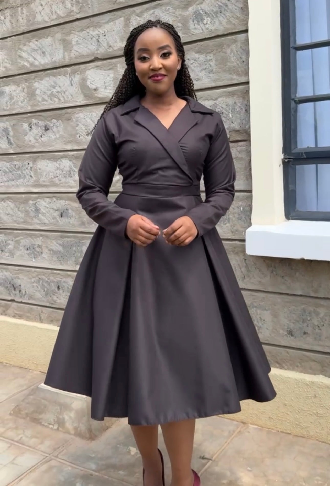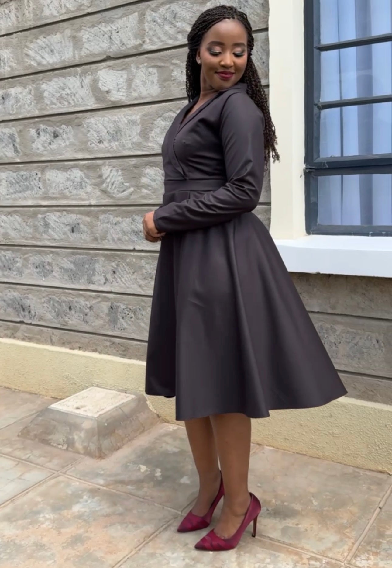• Stand out from everyone else in the office with this formal dress. Designed to flatter every body type and make you feel beautiful as you maneuver around the corporate world. Pair with some heels and a matching bag and you’re good to go! A dress that makes you look like the boss you already are.
