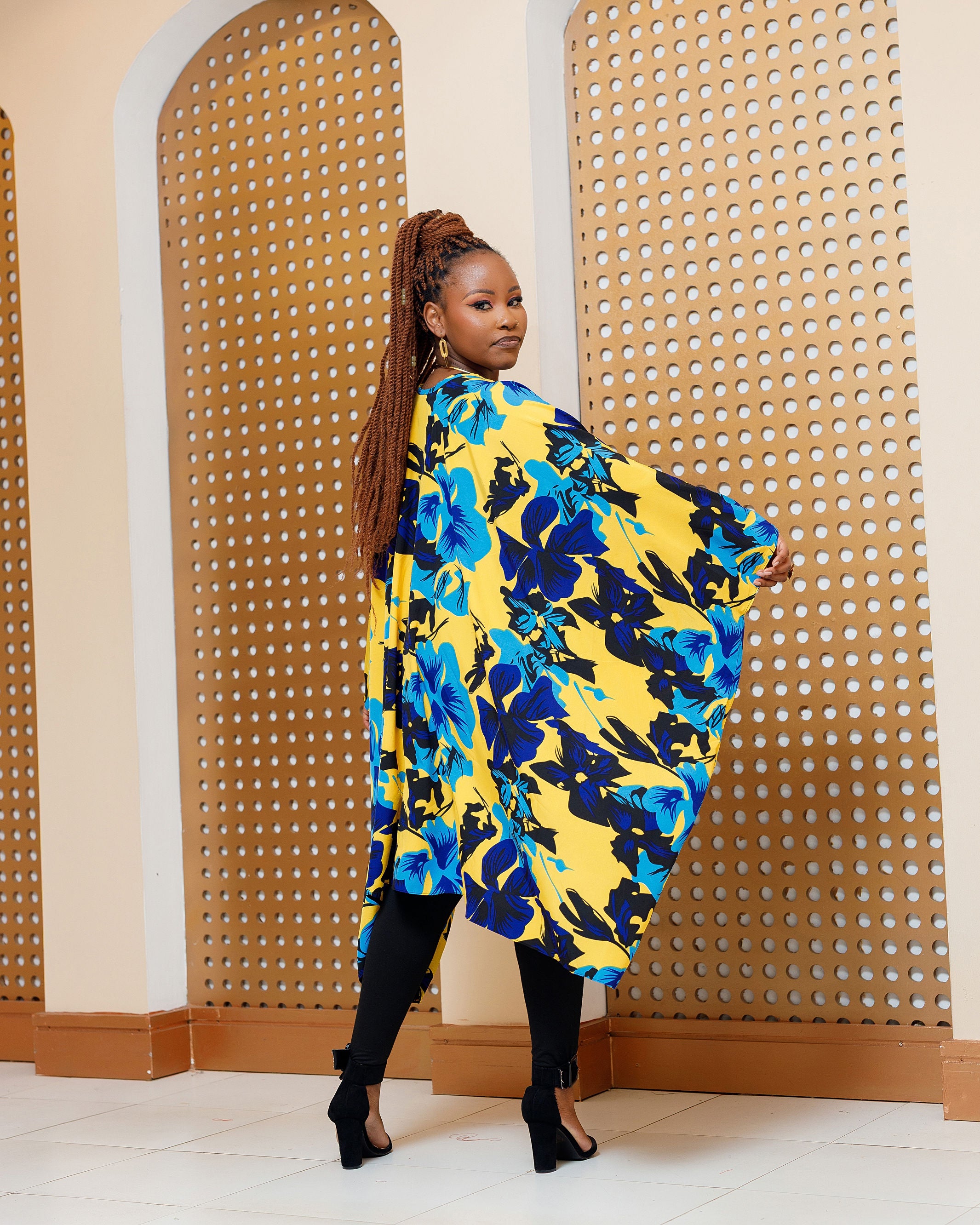 A flowy dress-style top, designed with a relaxed fit that drapes beautifully over the body.