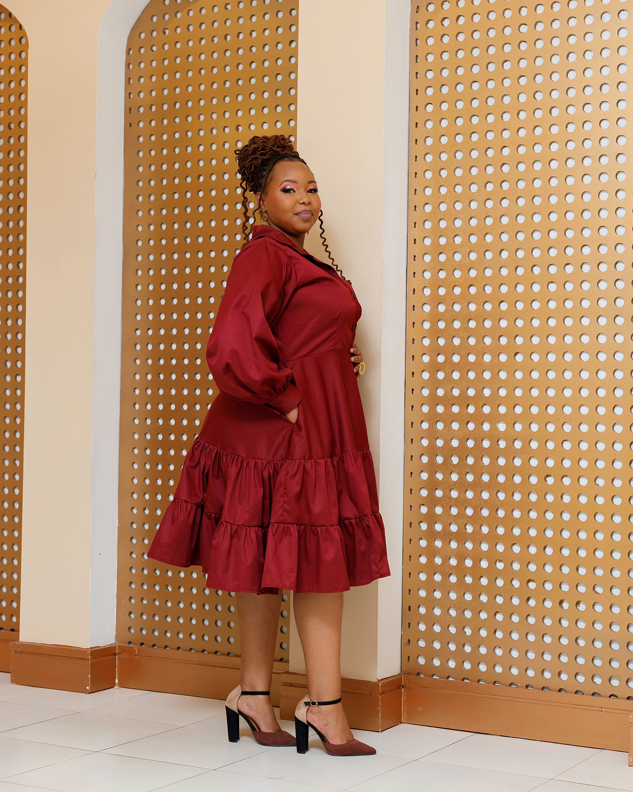 Buyende Cotton Knee Dress - Burgundy