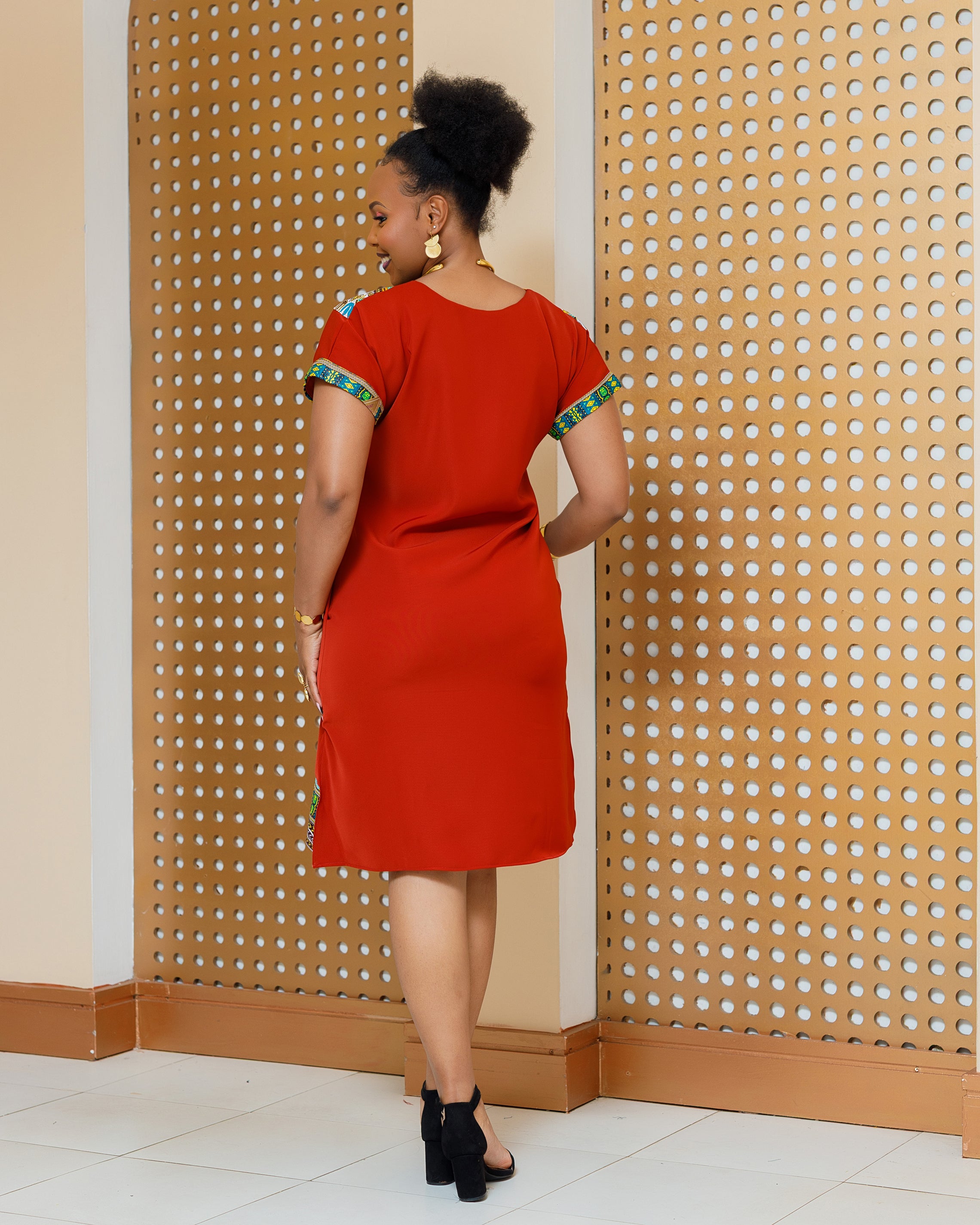 Emali Ankara Knee Dress- Burnt Orange/Fire Brown