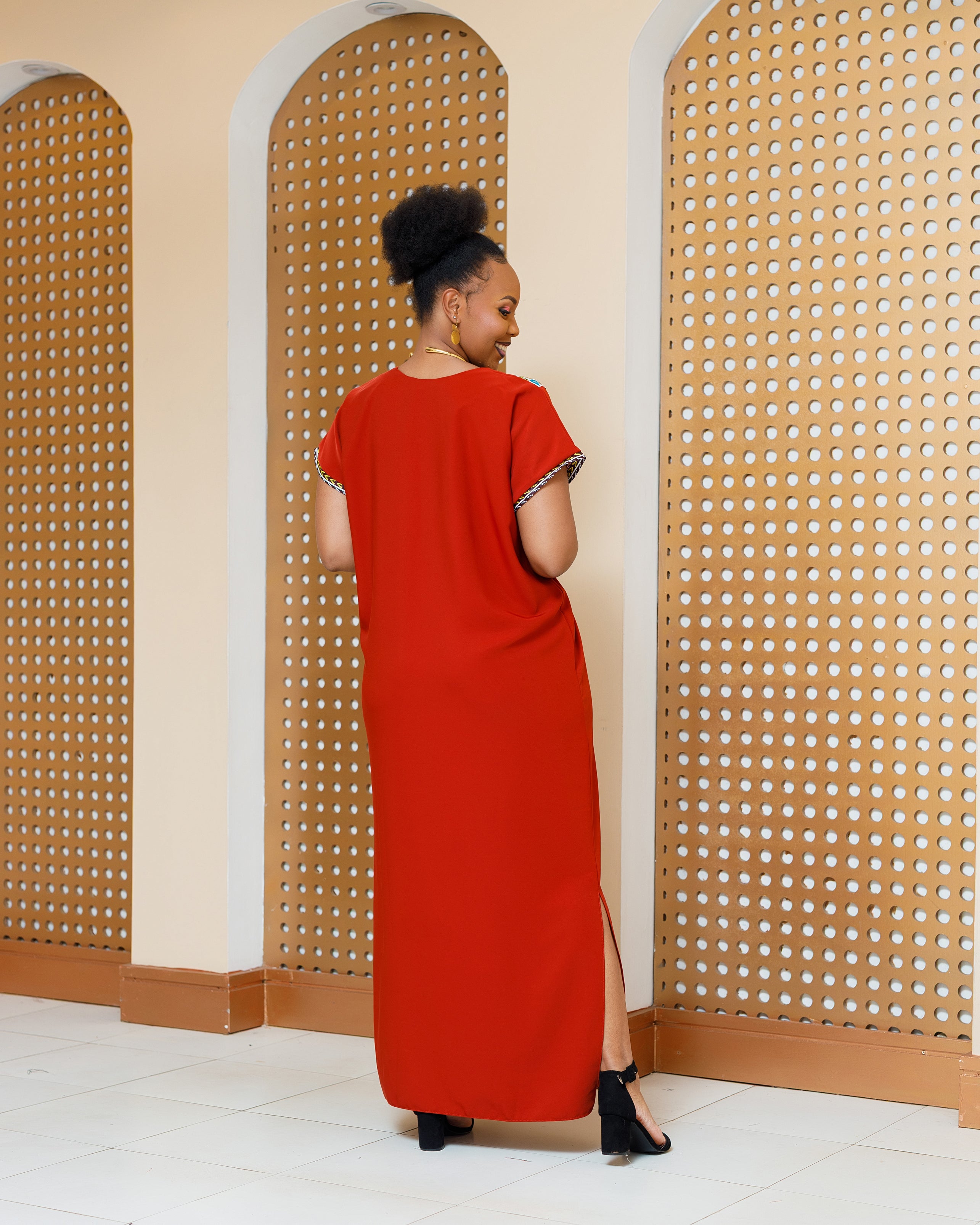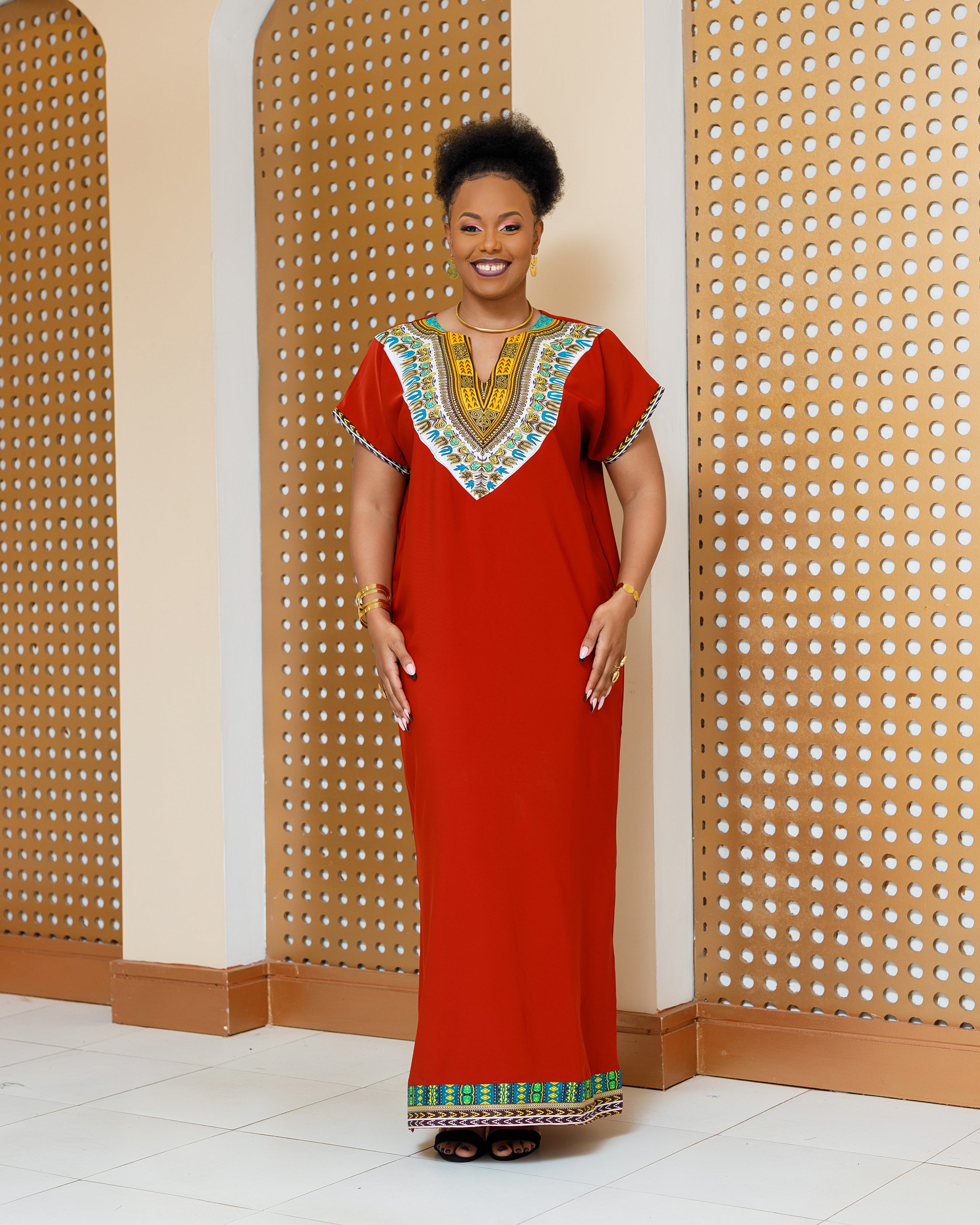 Emali Ankara Maxi Dress- Burnt Orange/Fire Brown