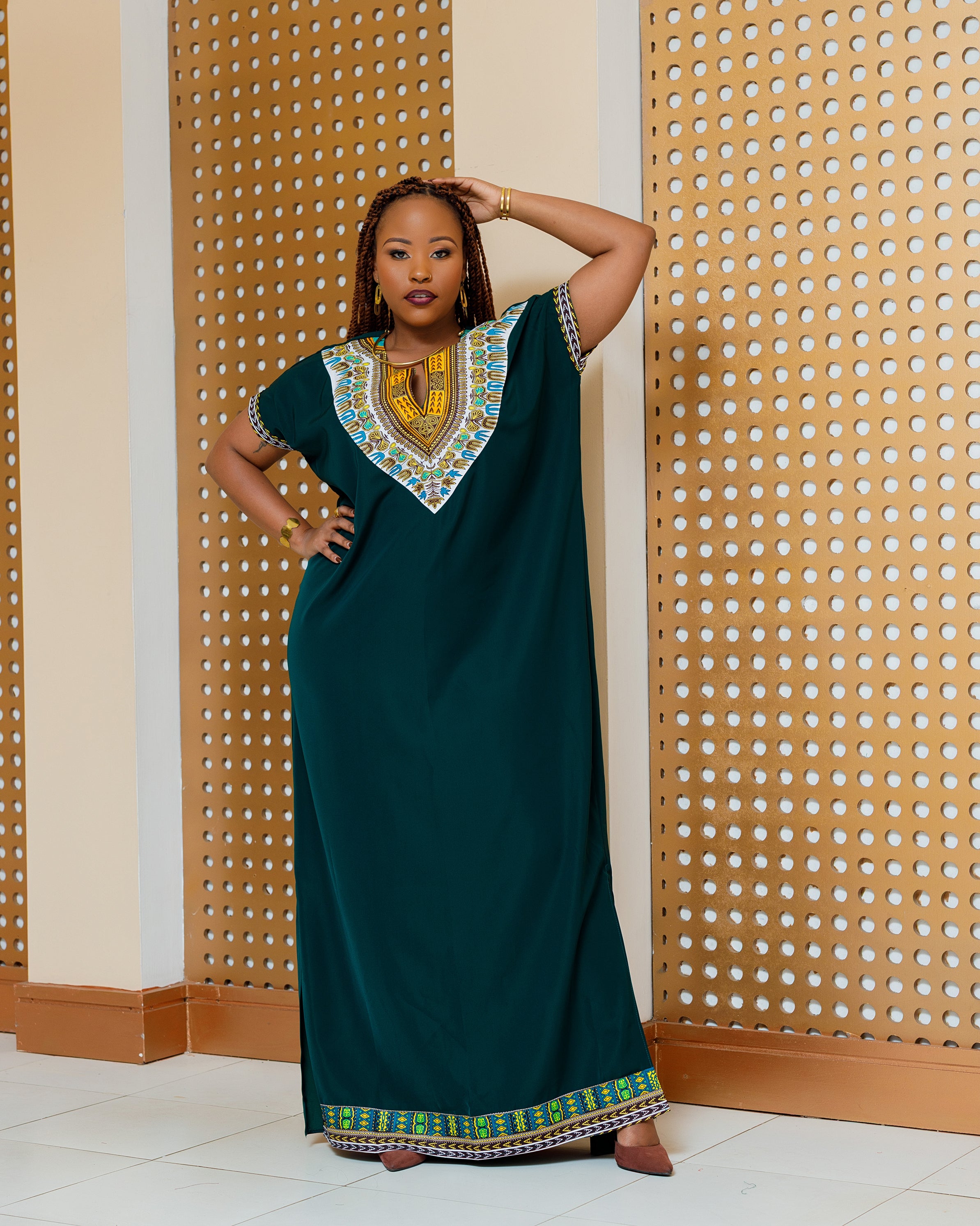 Emali Ankara Maxi Dress- Emerald Green