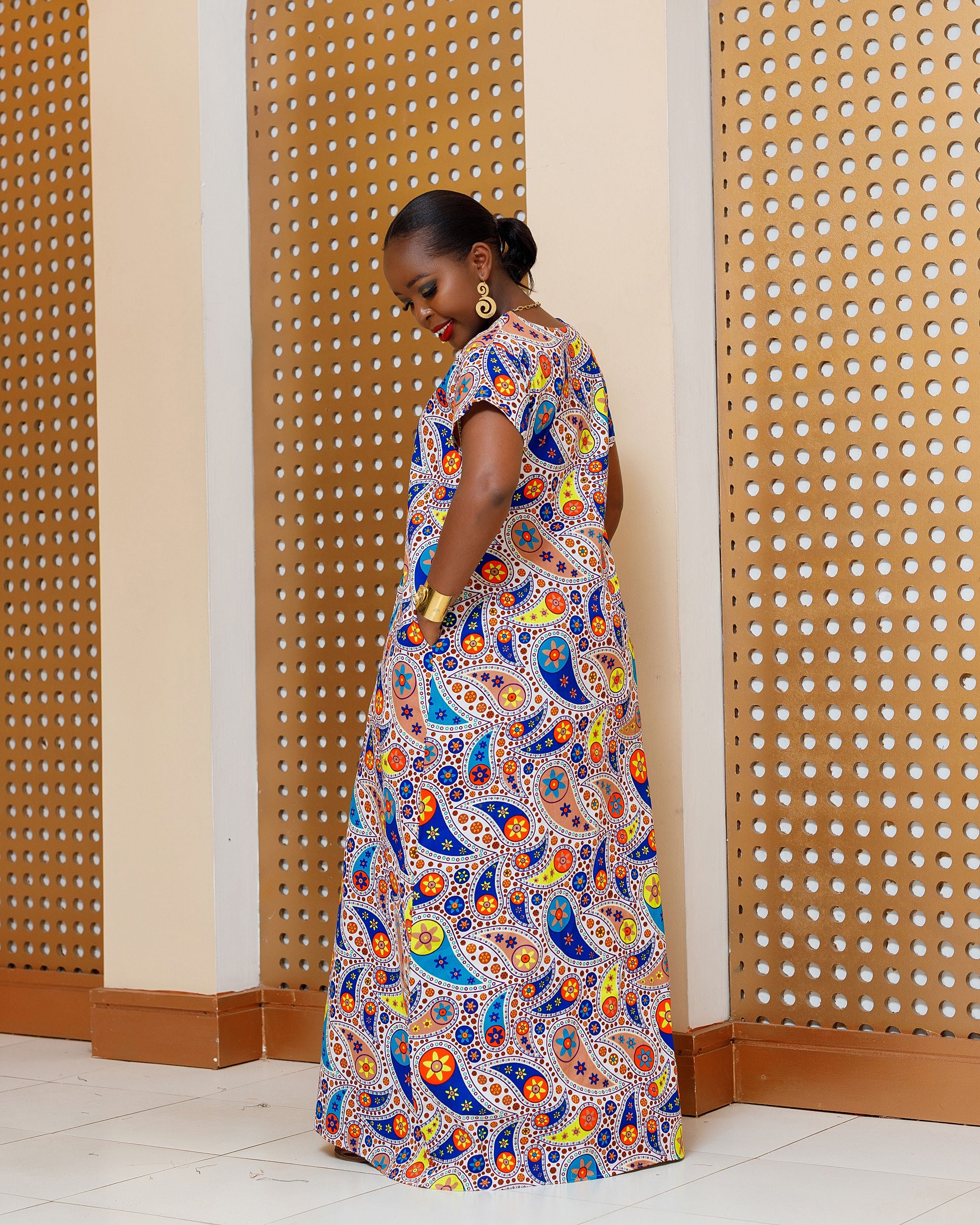 Emunali Ankara Maxi Dress - Blue