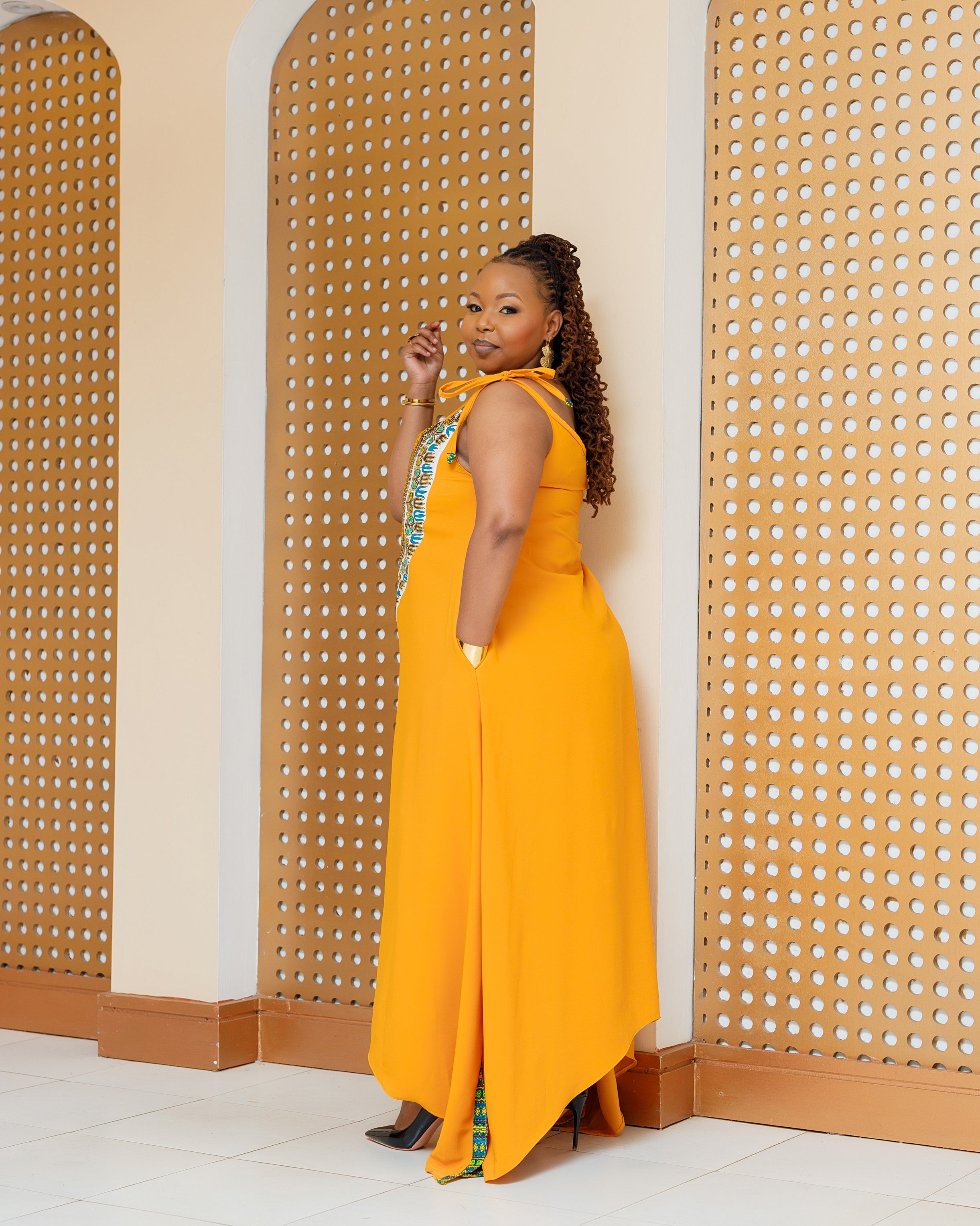 Enchoro Ankara Maxi Dress- Mustard Yellow