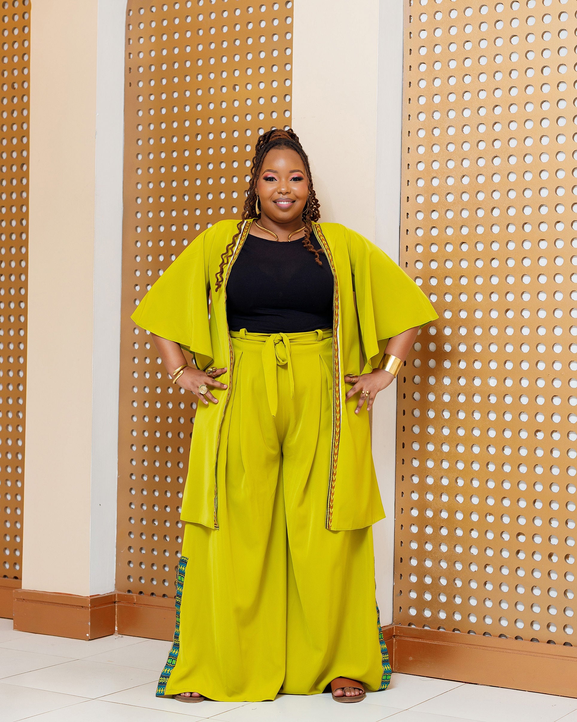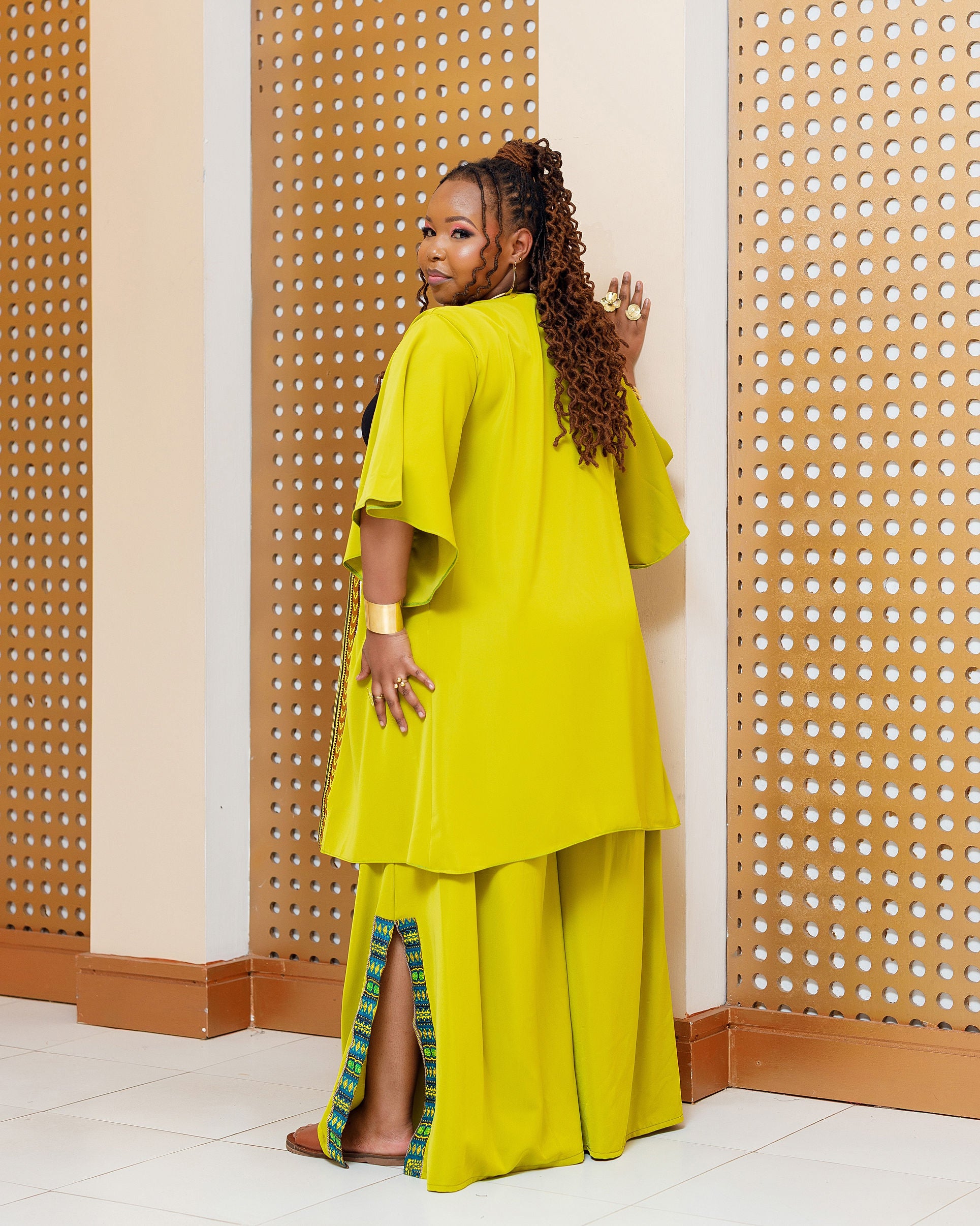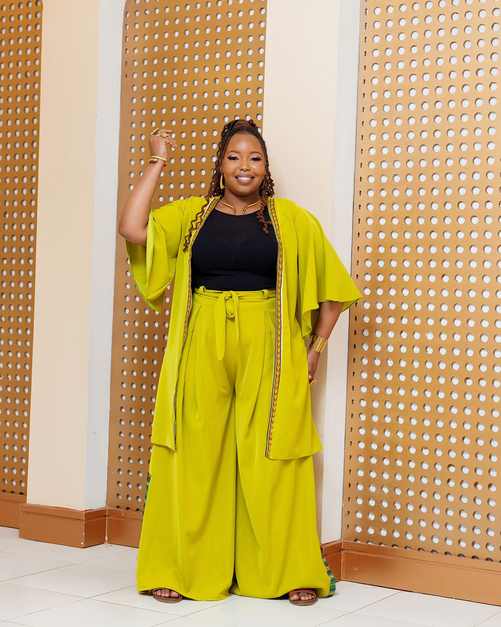 Enchoro Full Set (Kimono + Palazzo) - Lime Green