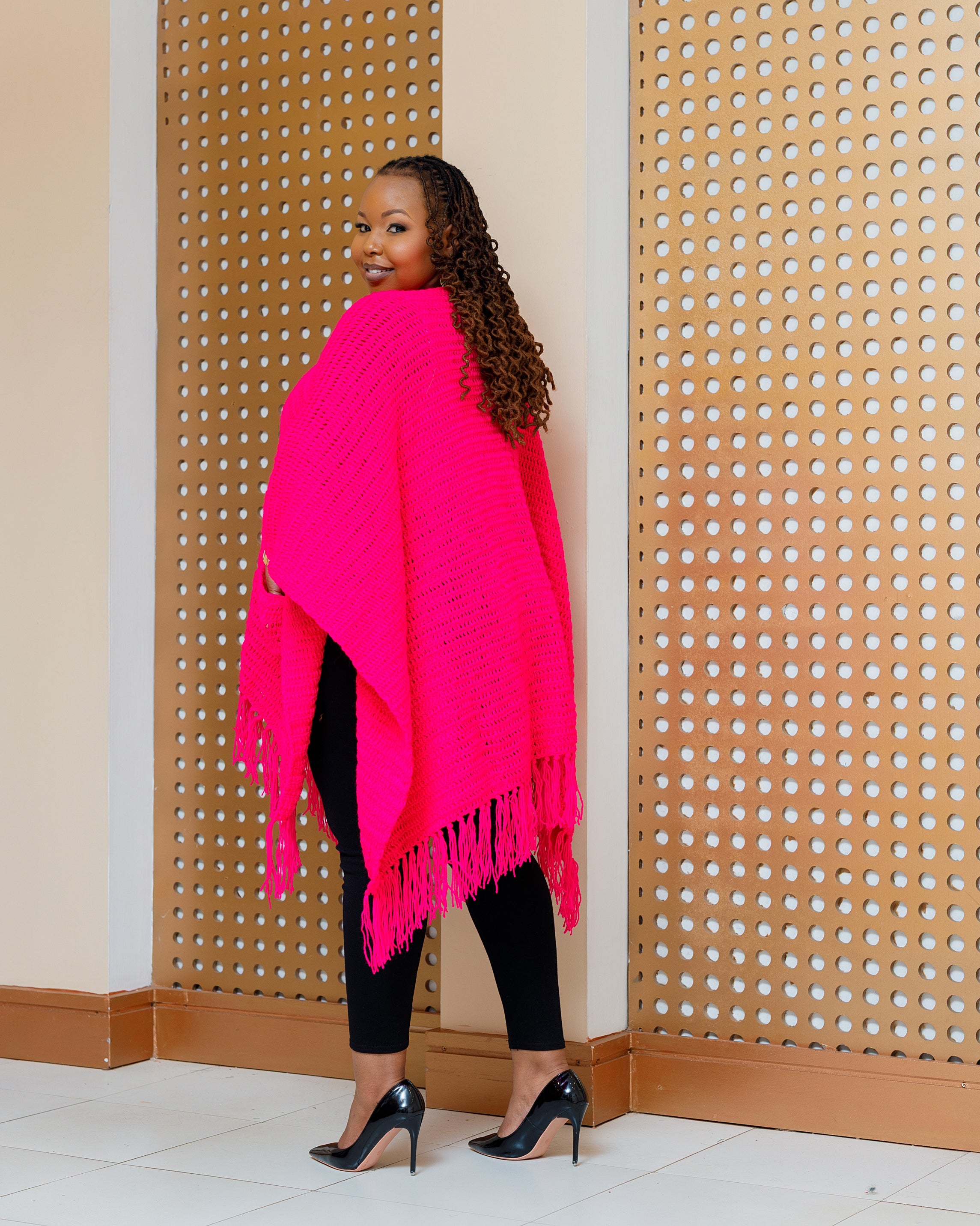Iltilal Hand Knitted Poncho - Hot Pink
