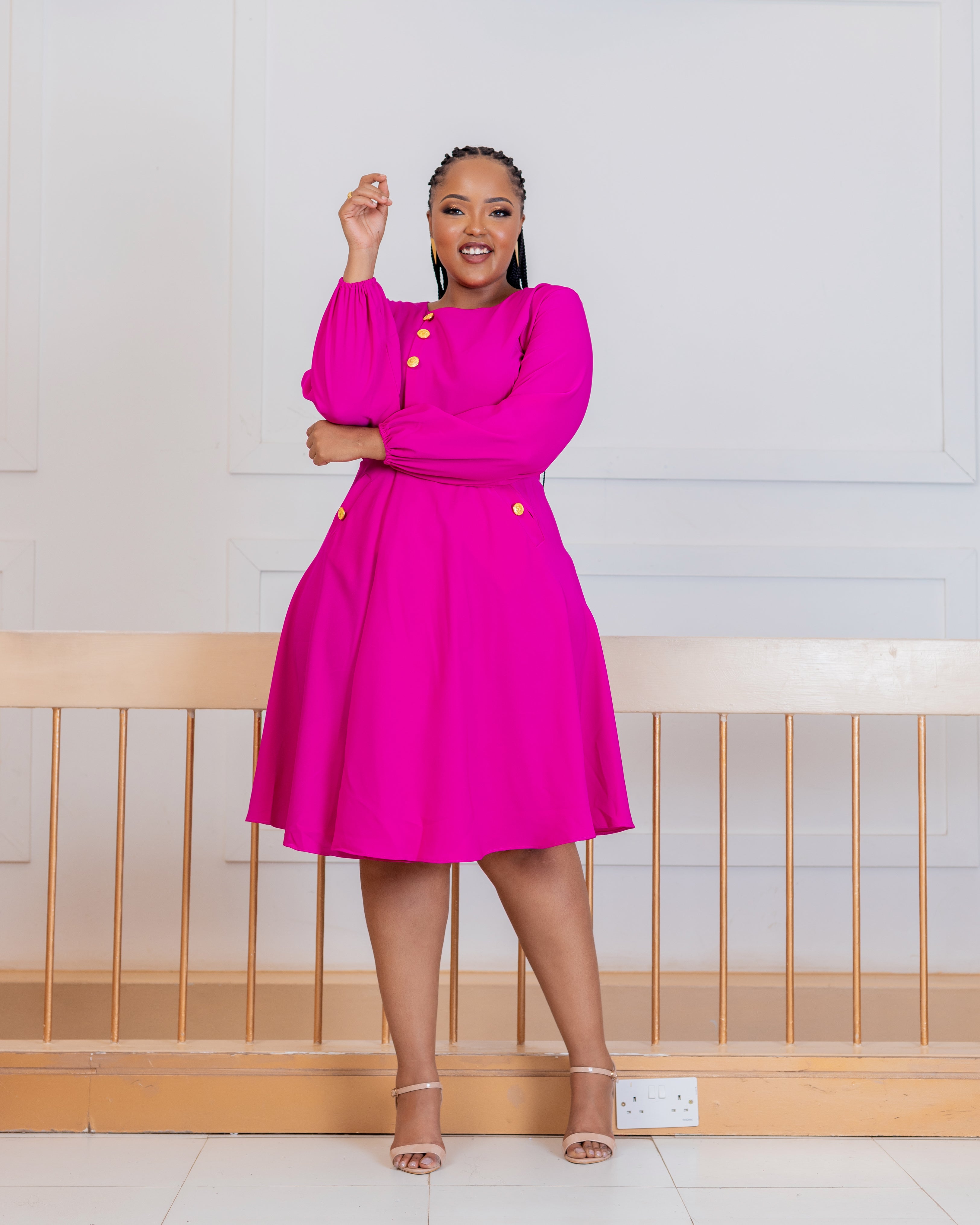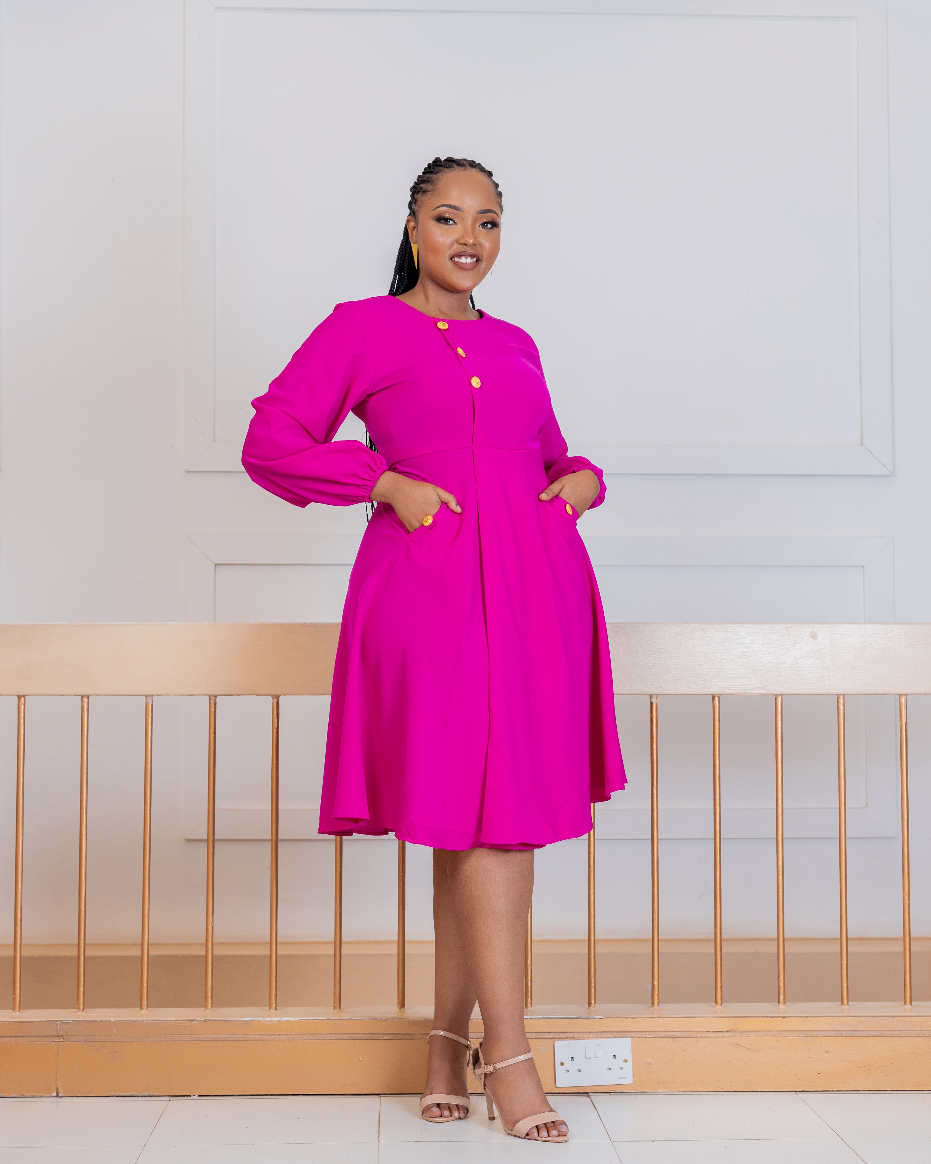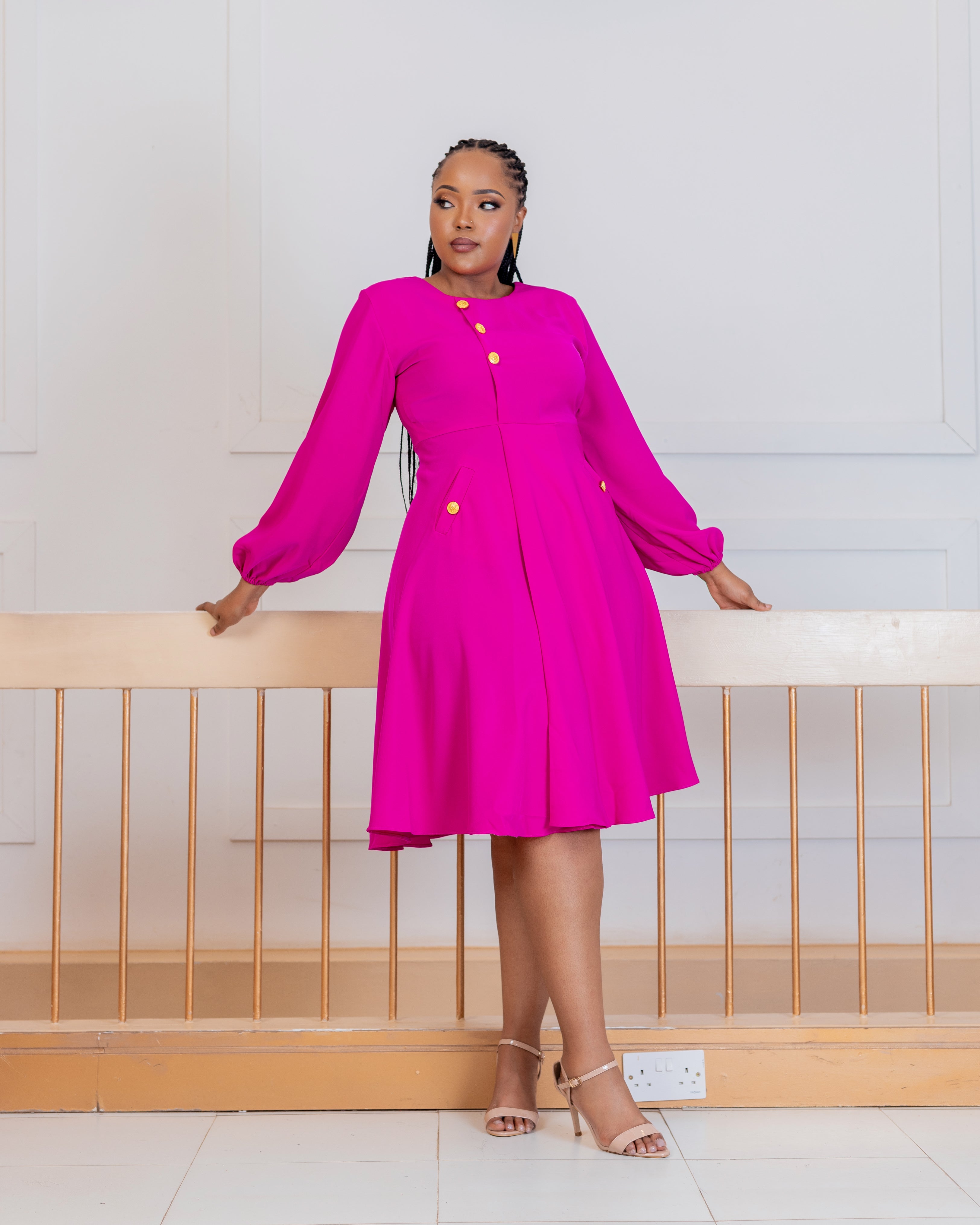 • For the stylish sophisticated lady, turn heads in this rich Fuchsia dress