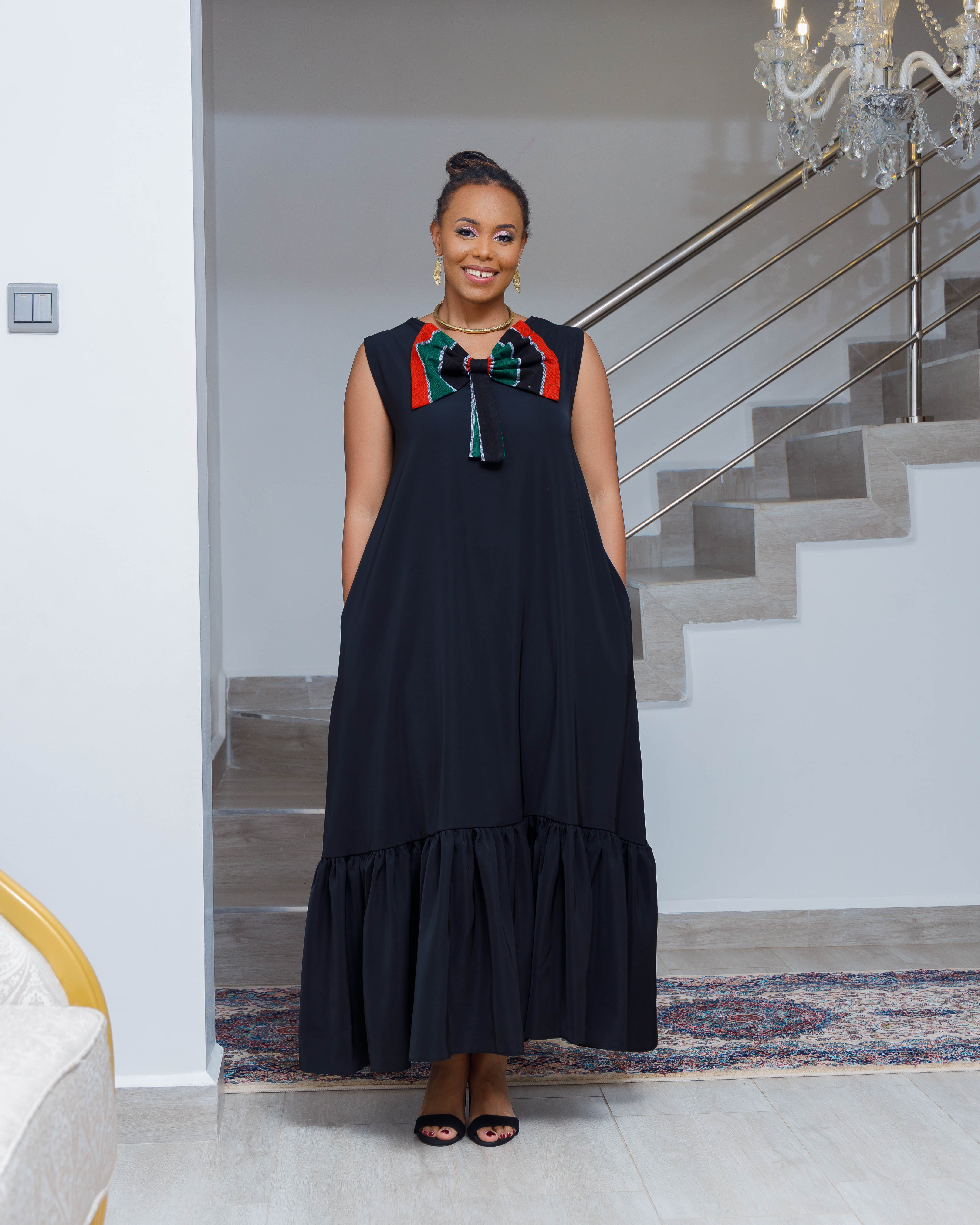 Kenyan Flag Lwanya Bow Dress - Black