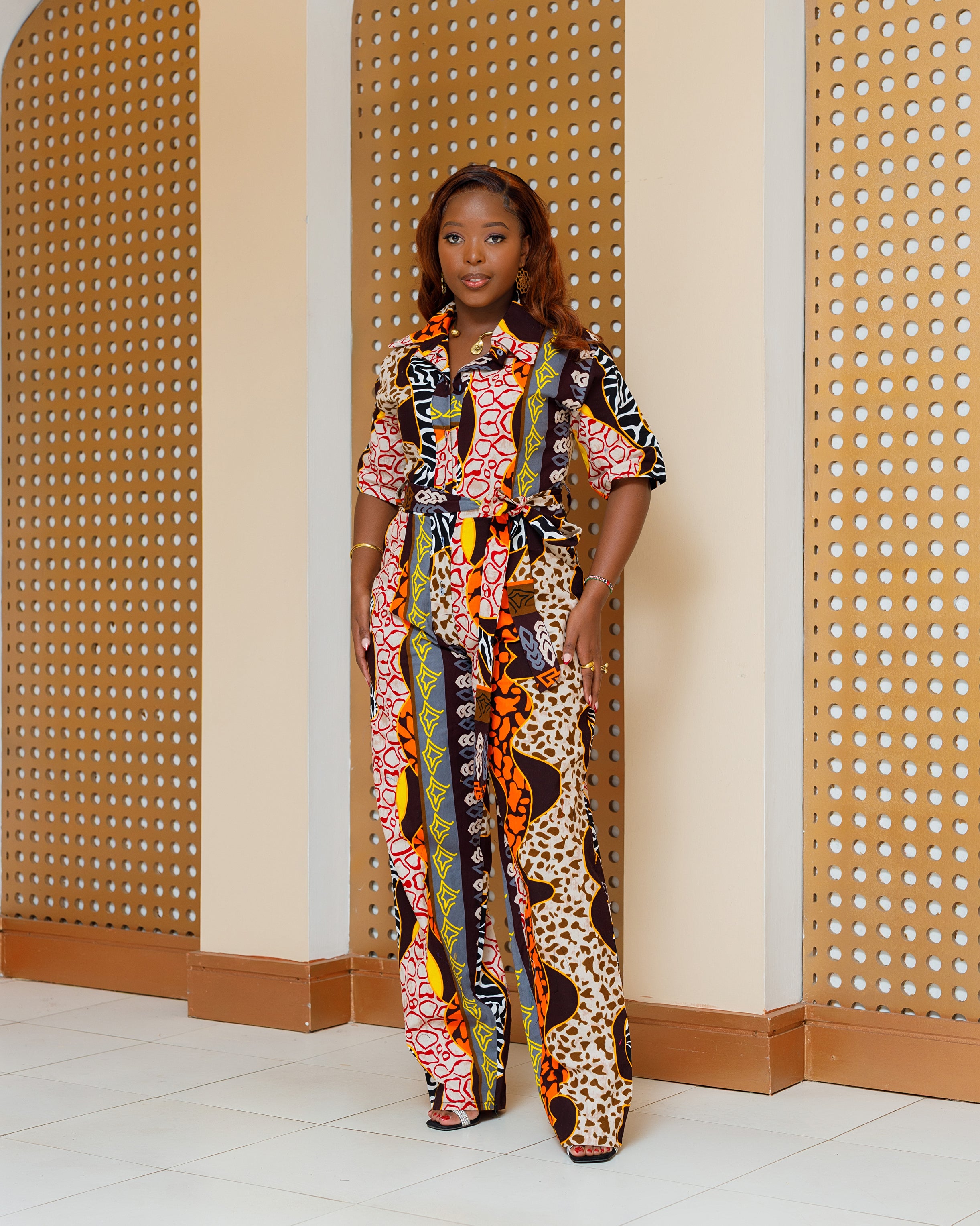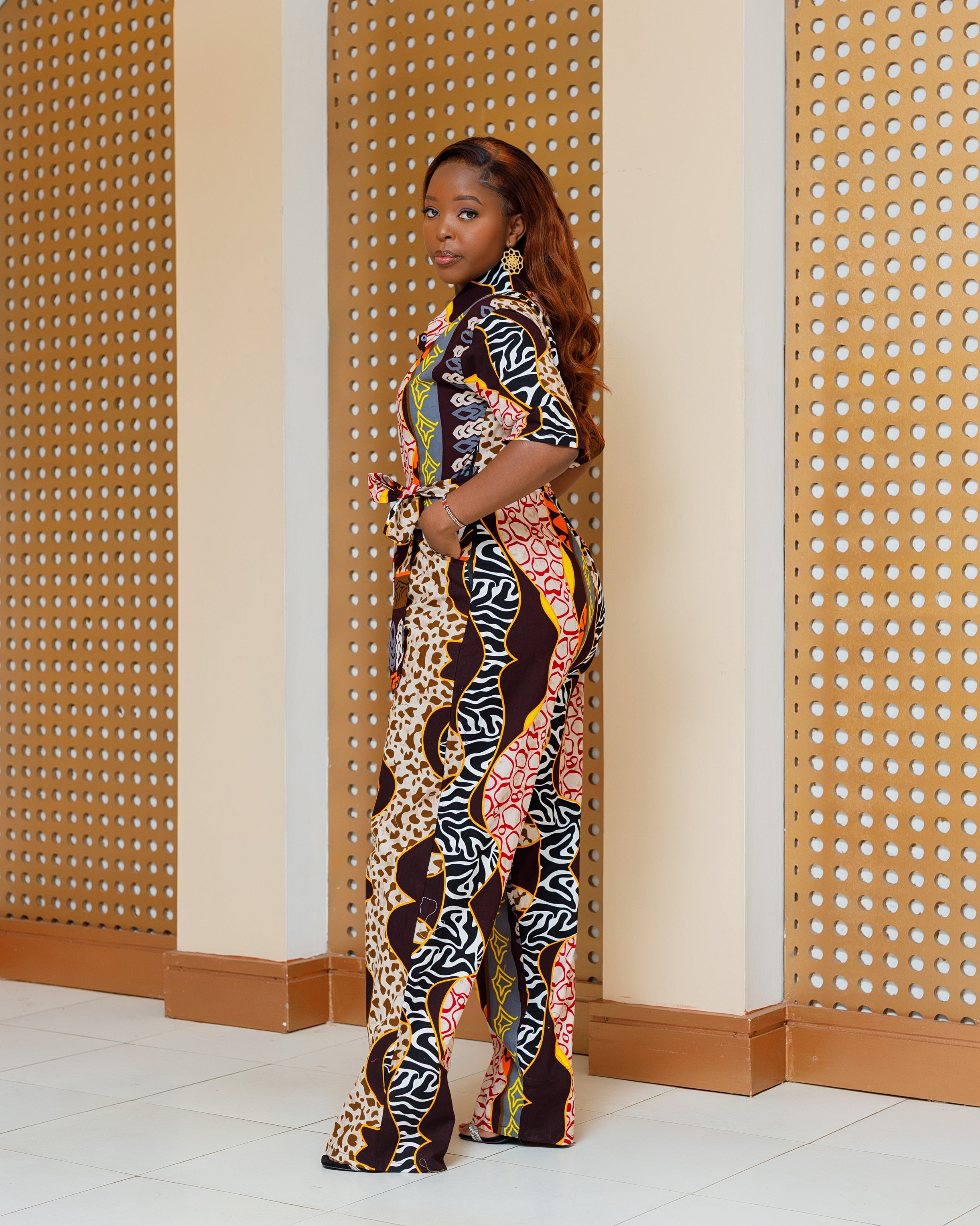 Kilome Ankara Jumpsuit - Brown Beige Print