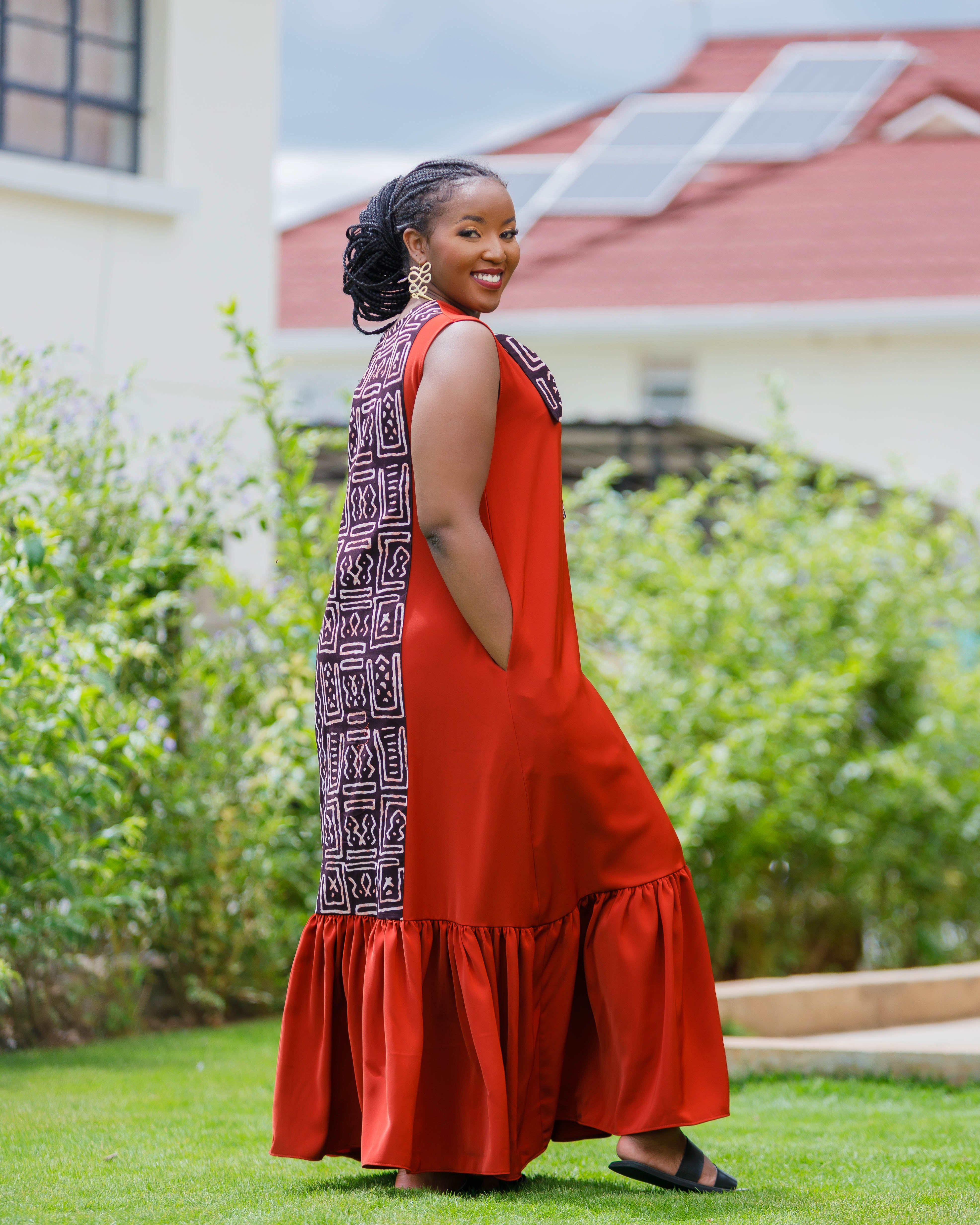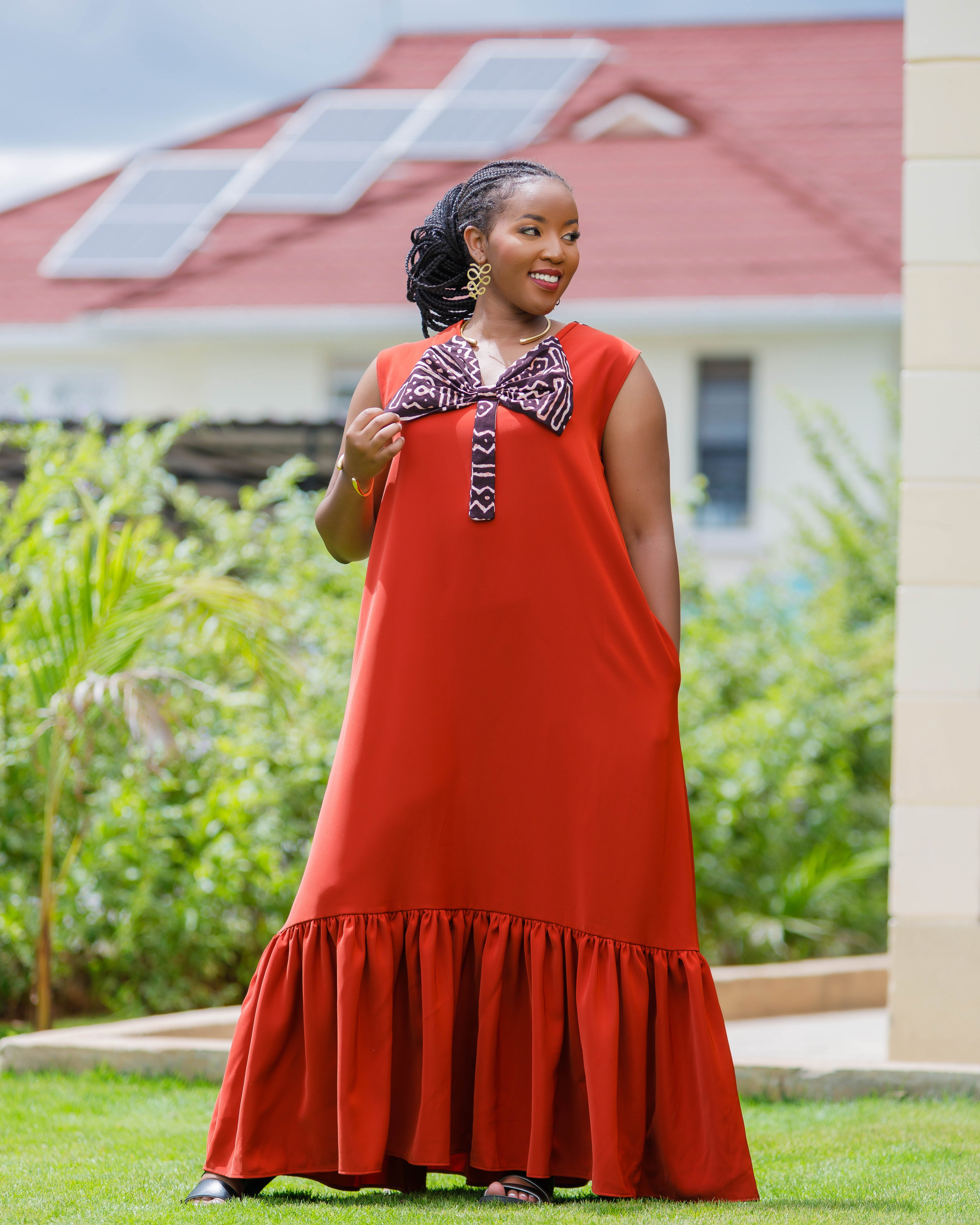 Ankara Lwanya Bow Dress - Fire Brown/ Burnt Orange