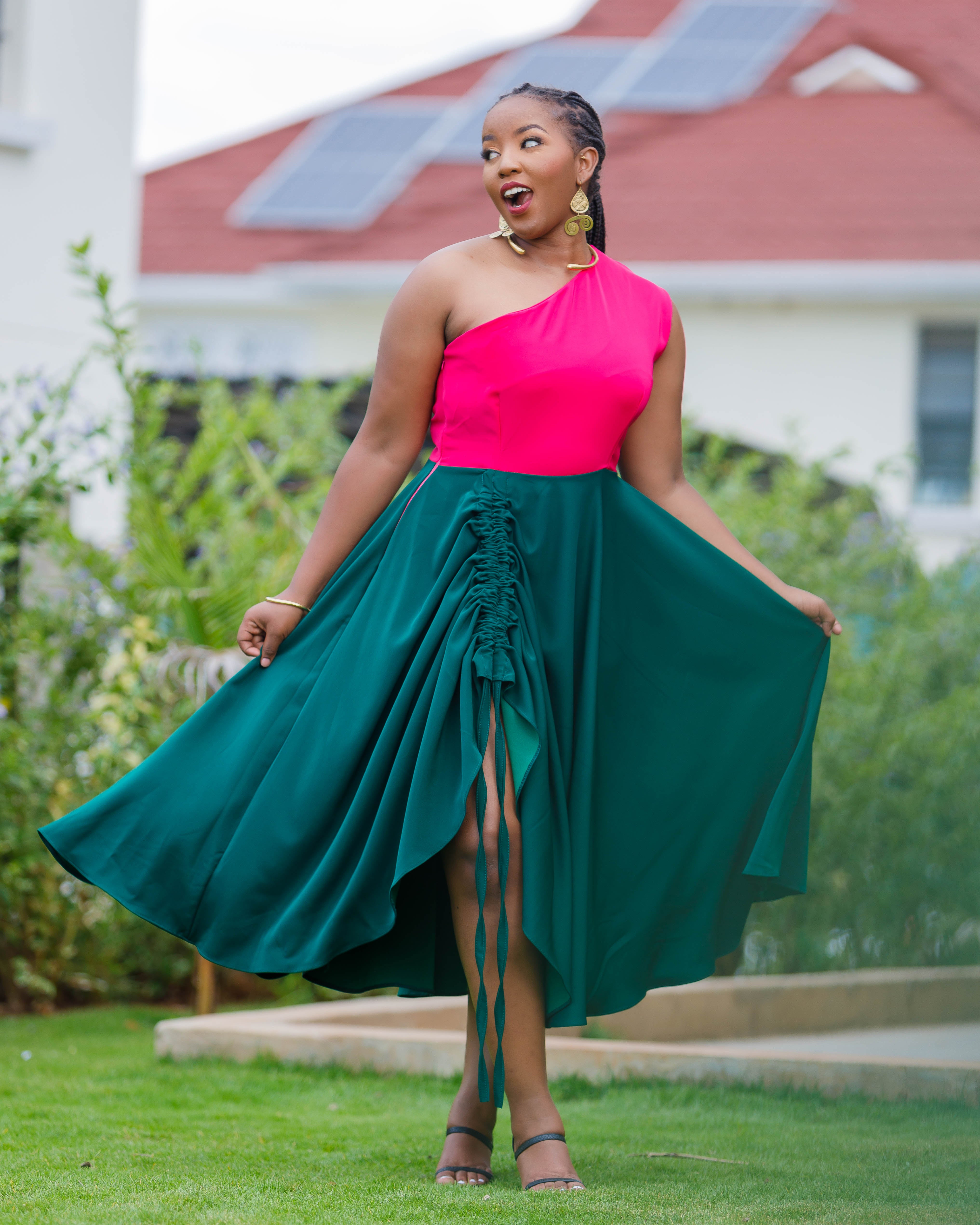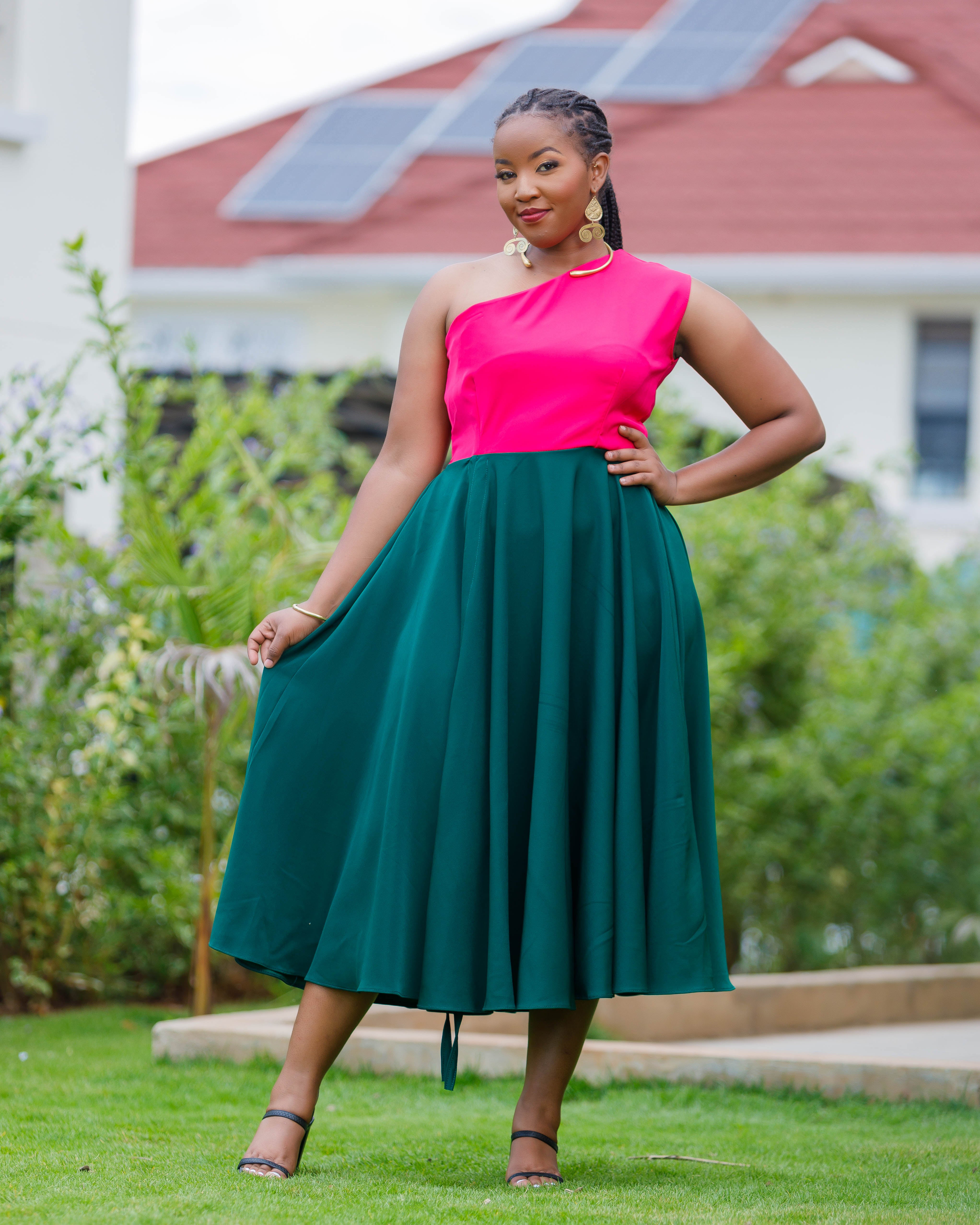 Marachi Dress - Hotpink/Emerald Green