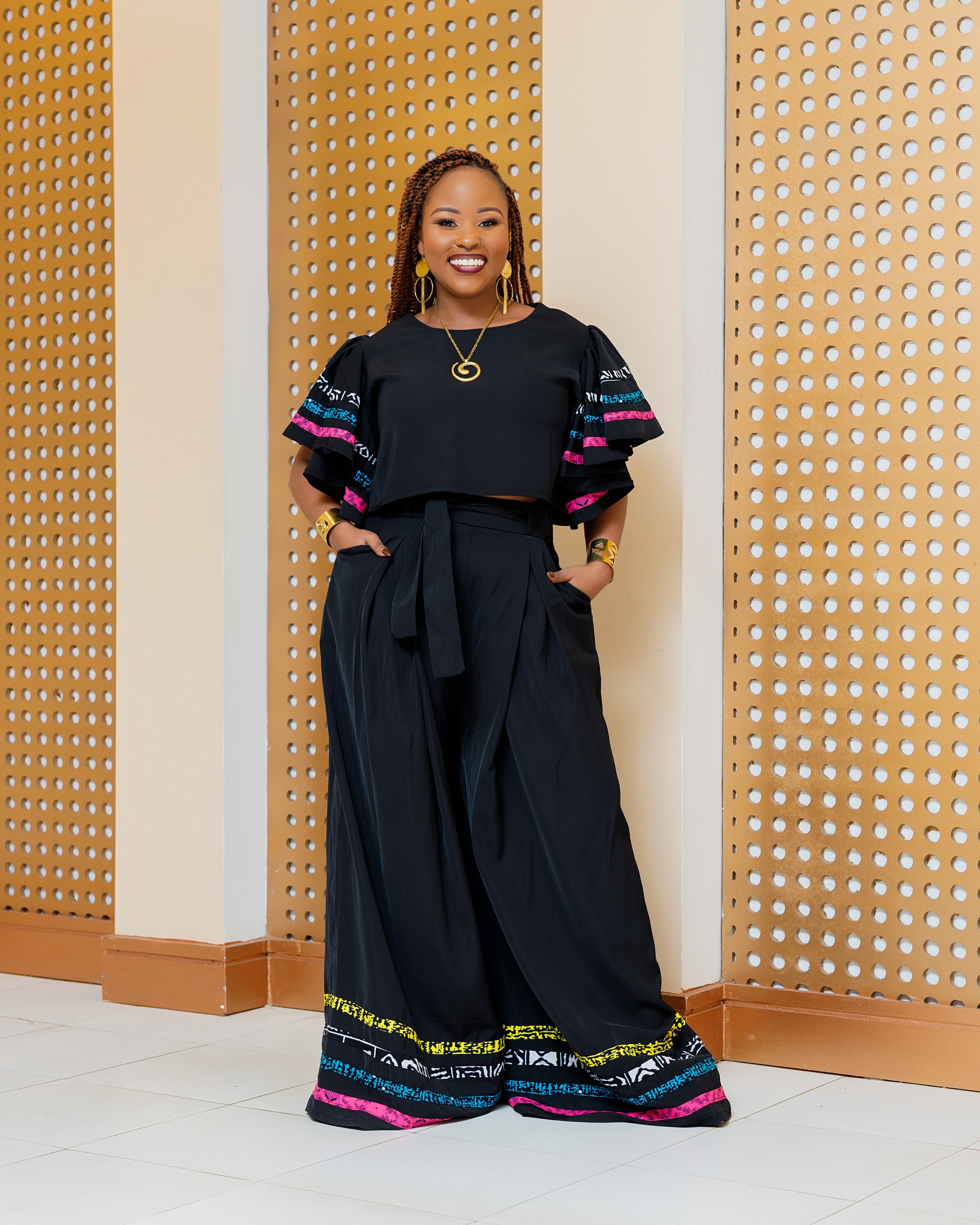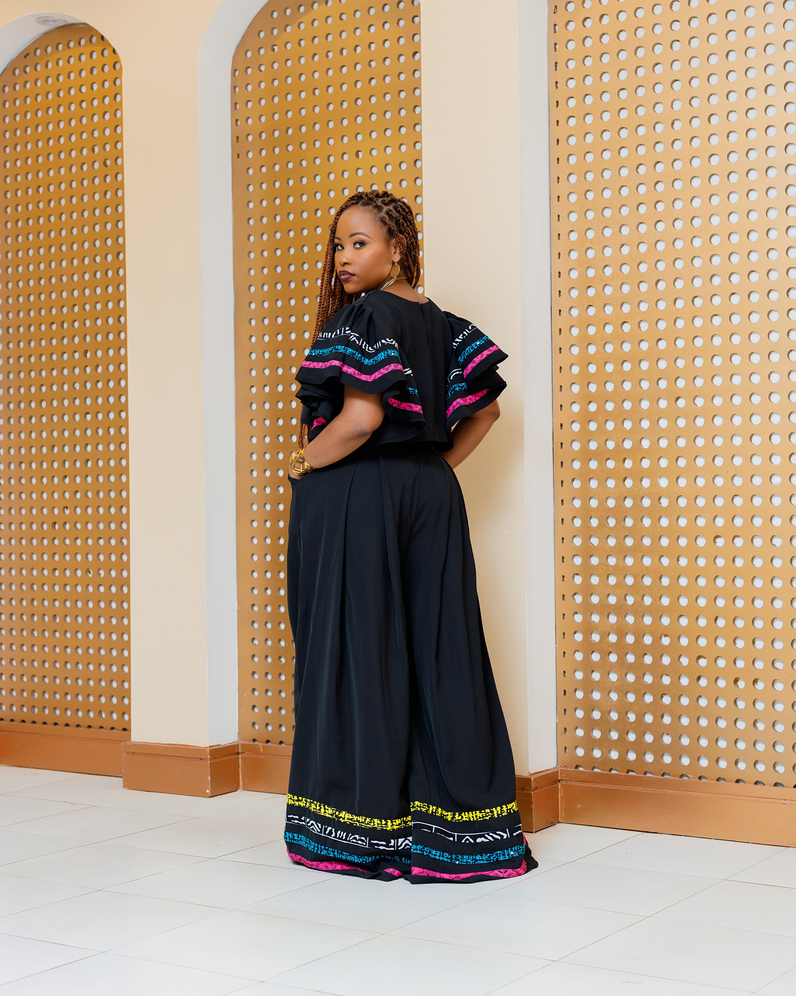 Nafoyo Ankara Full Set (Crop Top+Palazzo)- Black/Multi Print