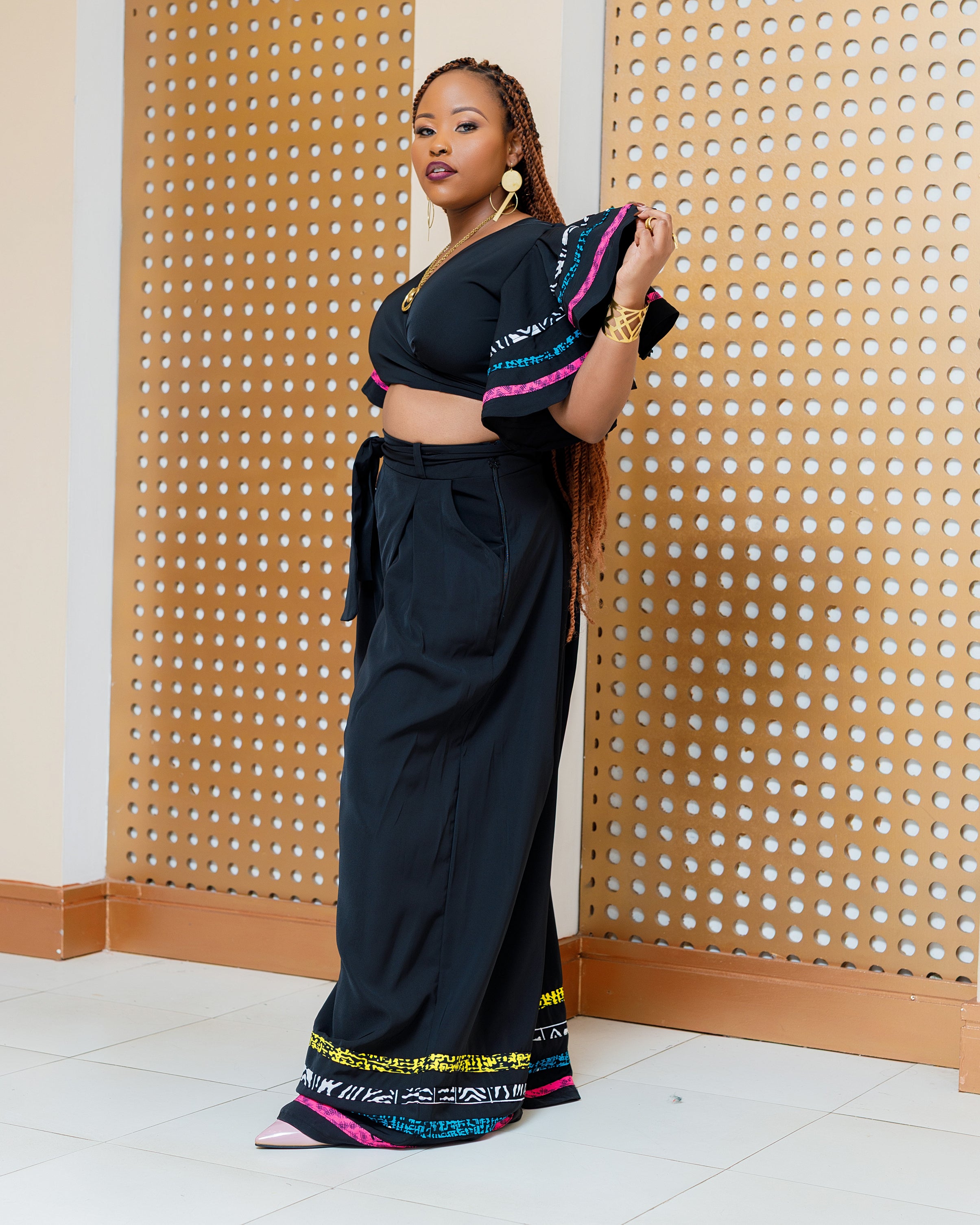 Nafoyo Ankara Wrap Top ONLY WITHOUT Palazzo - Black/Multi Print