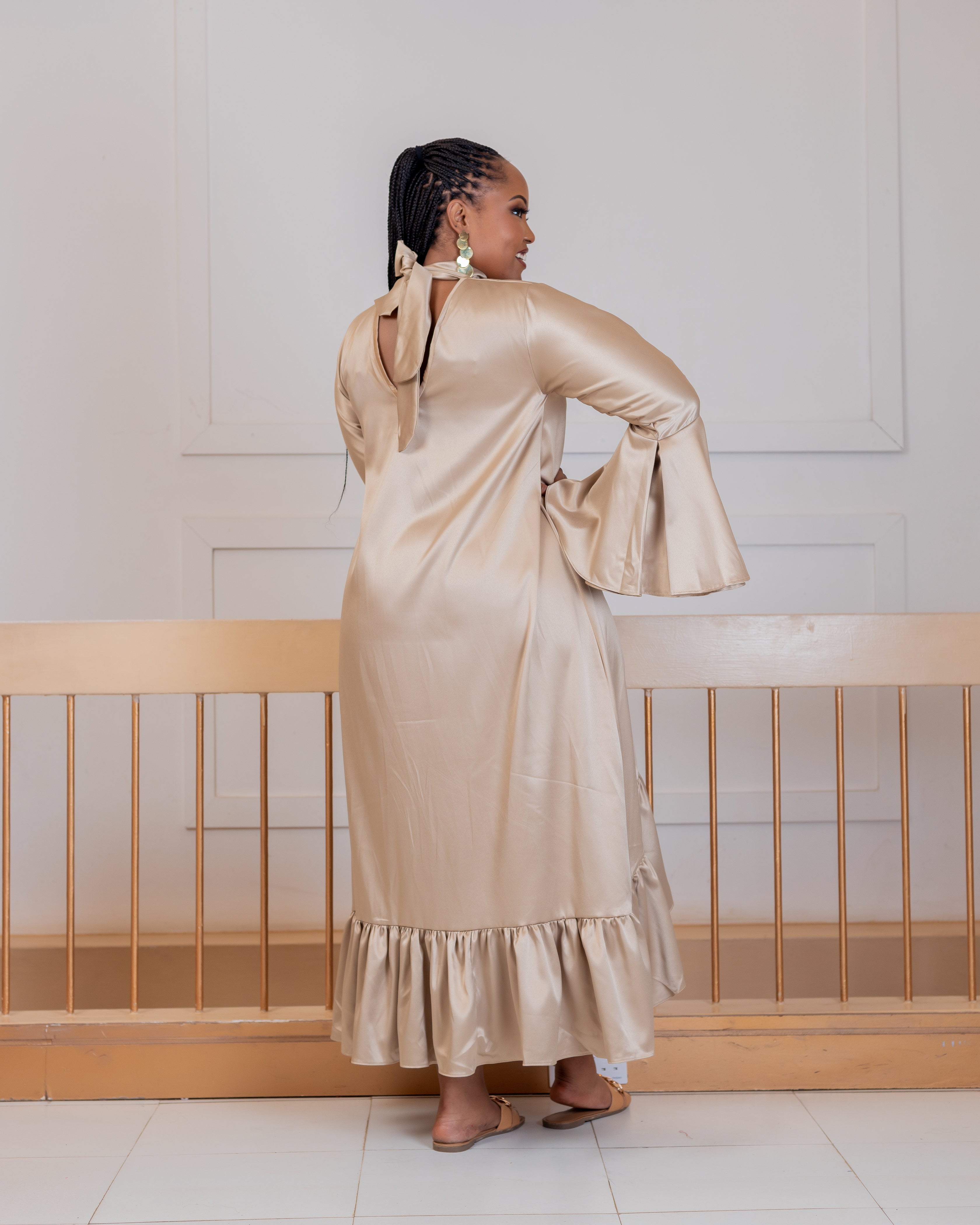 The Nyakach Dress is a blend of fun and classy, the fabric is heavy, high quality, smooth fabric, it features tieable straps at the sleeves for that stylish touch. The wrap style gives the dress a touch of elegance and allows for an adjustable fit. Pair it with heels to dress up or sandals for a casual day.