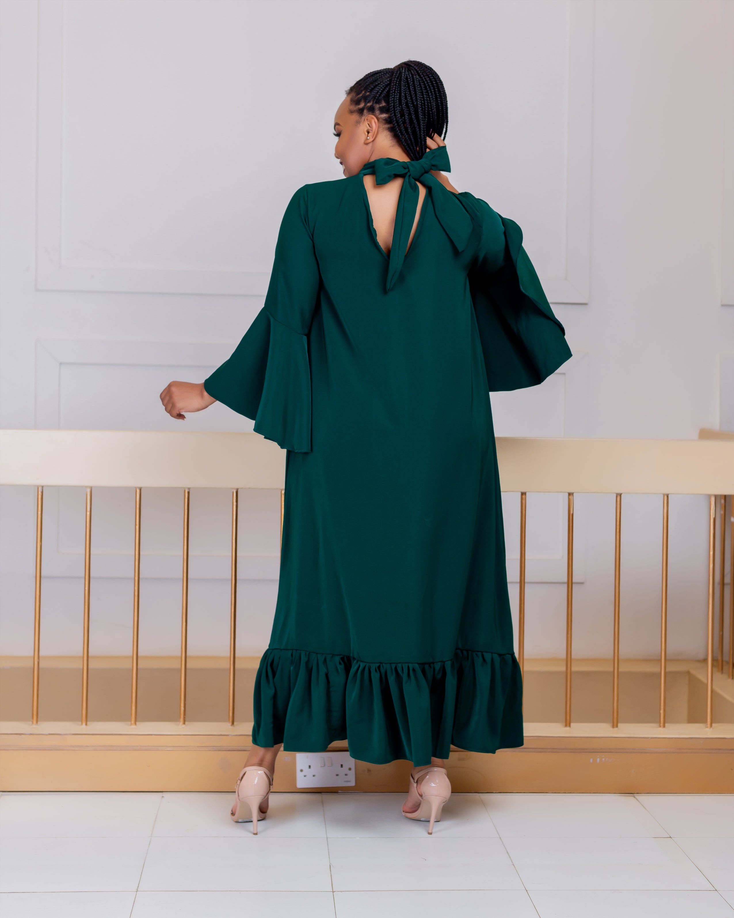 • Claim your confidence in this rich Auntie Dress, Stand out from everyone else in  this bold Emerald Green colour. Designed to flatter every body type and make you feel beautiful as you maneuver around the world. Pair with some heels and a matching bag and you’re good to go!