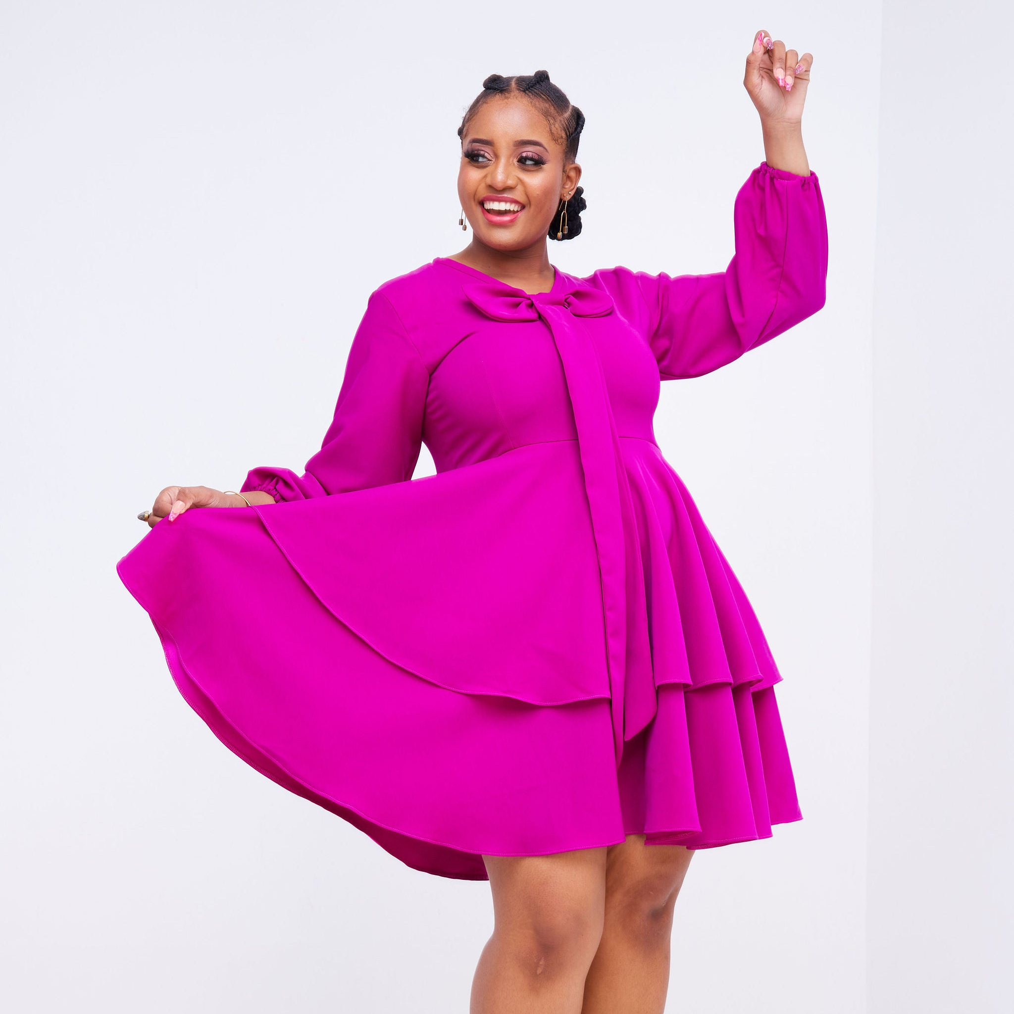 • For the stylish sophisticated lady, turn heads in this rich Fuchsia dress
