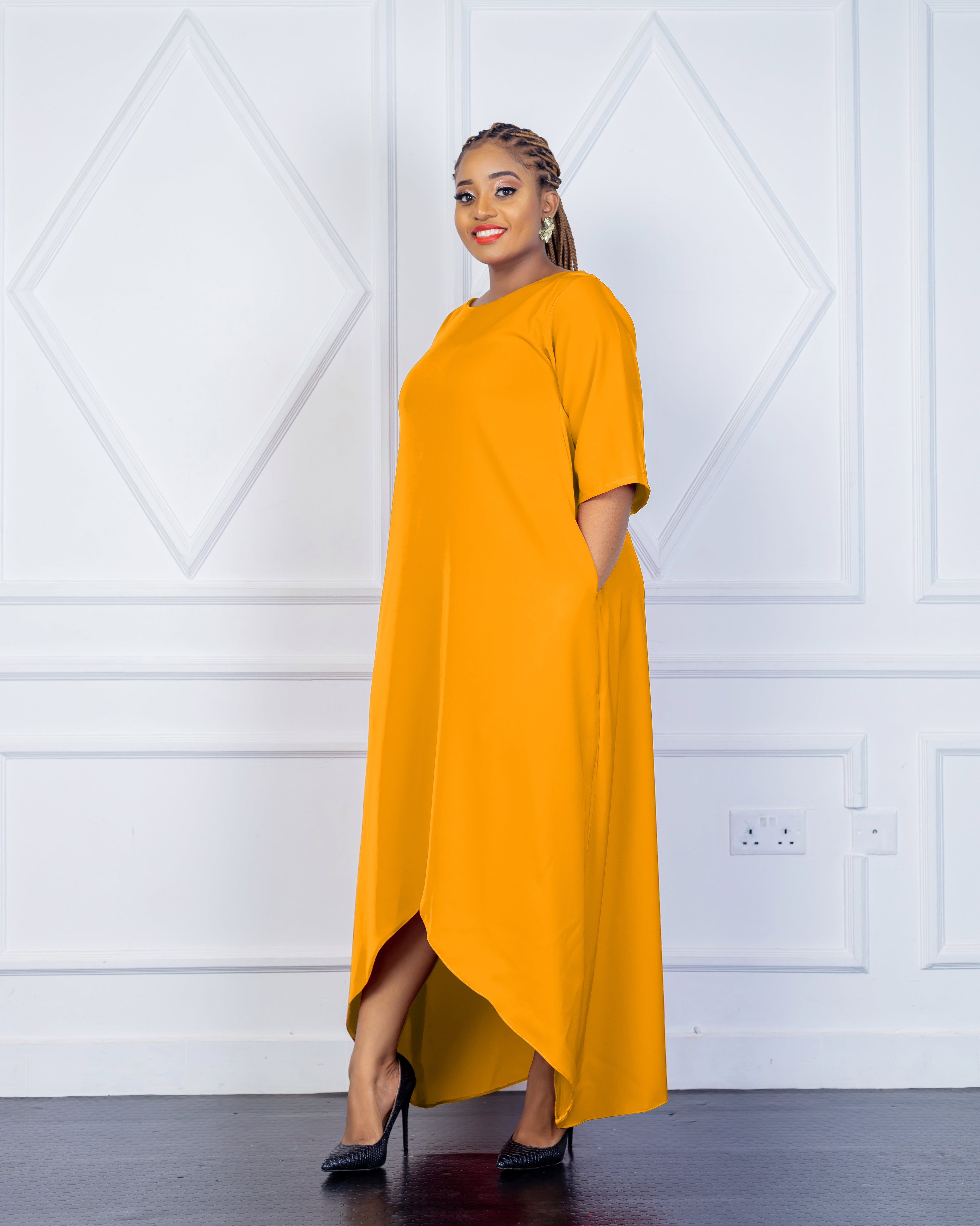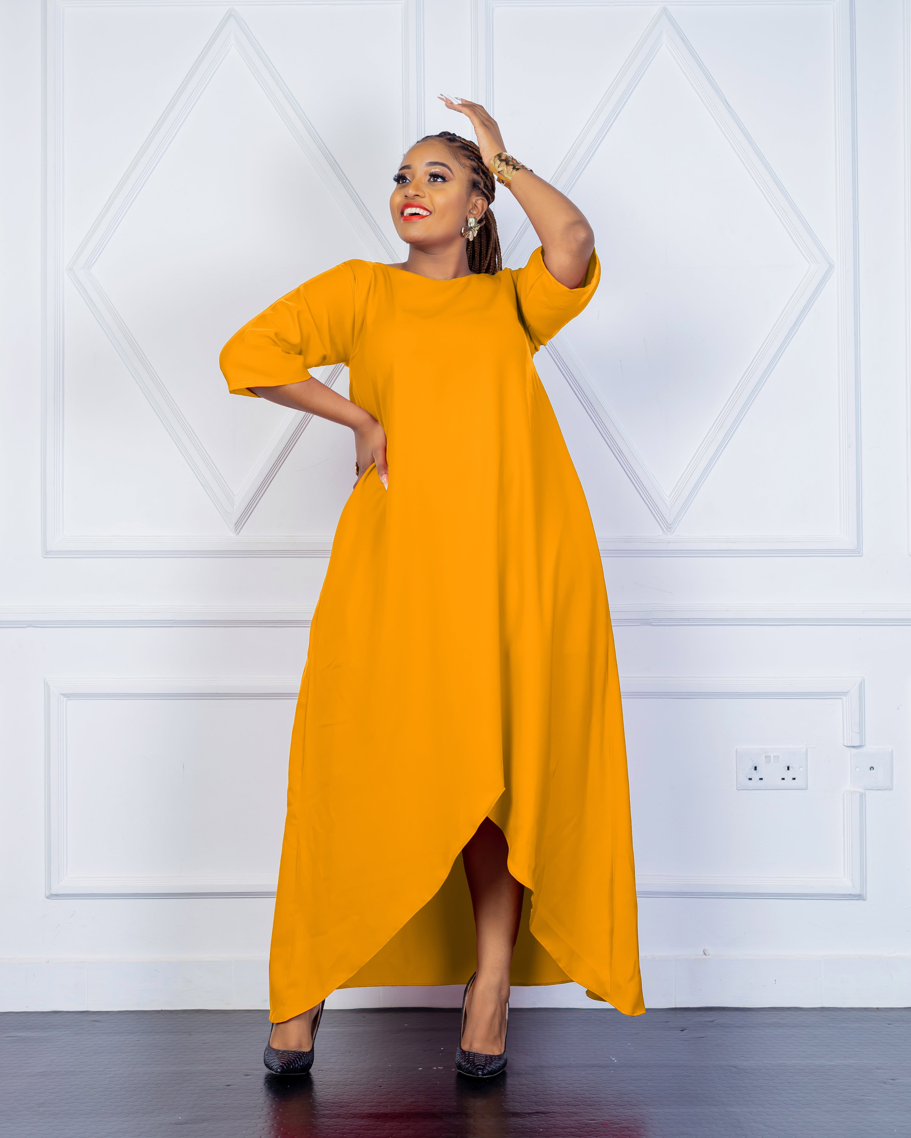 Radiant in Mustard! Introducing our Mustard Yellow High-Low Shift Dress – a burst of sunshine for your wardrobe! Get ready to embrace the warmth and style of this stunning dress. Here's why it's a must-have: