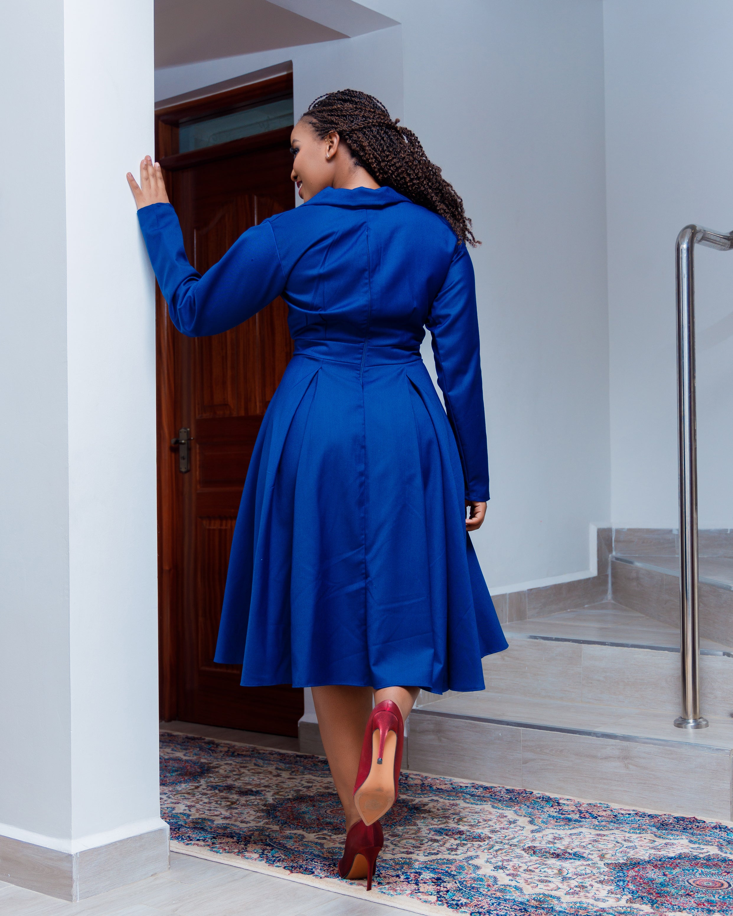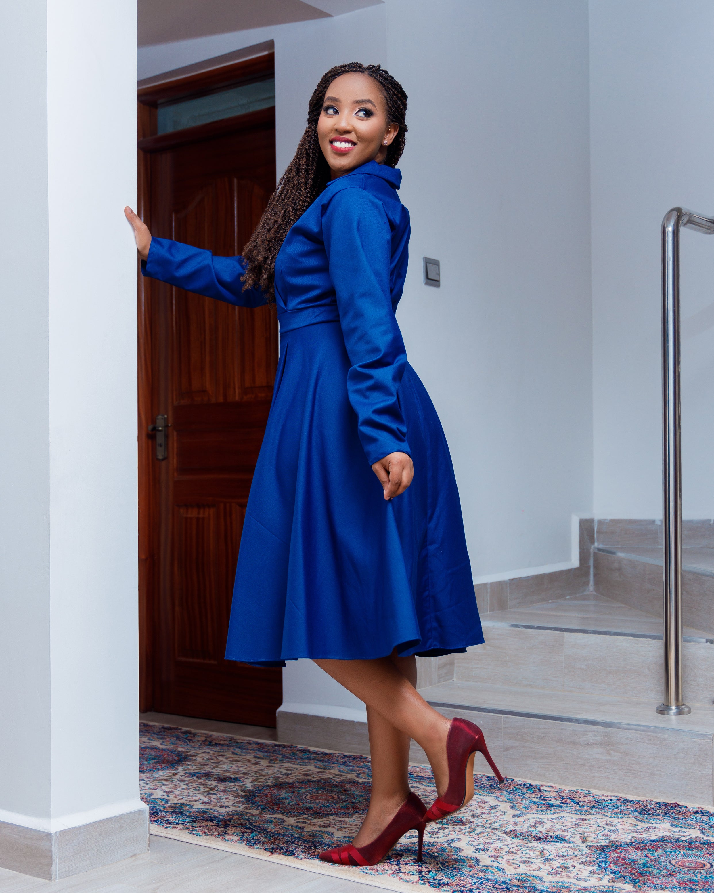 • Stand out from everyone else in the office with this formal dress. Designed to flatter every body type and make you feel beautiful as you maneuver around the corporate world. Pair with some heels and a matching bag and you’re good to go! A dress that makes you look like the boss you already are.