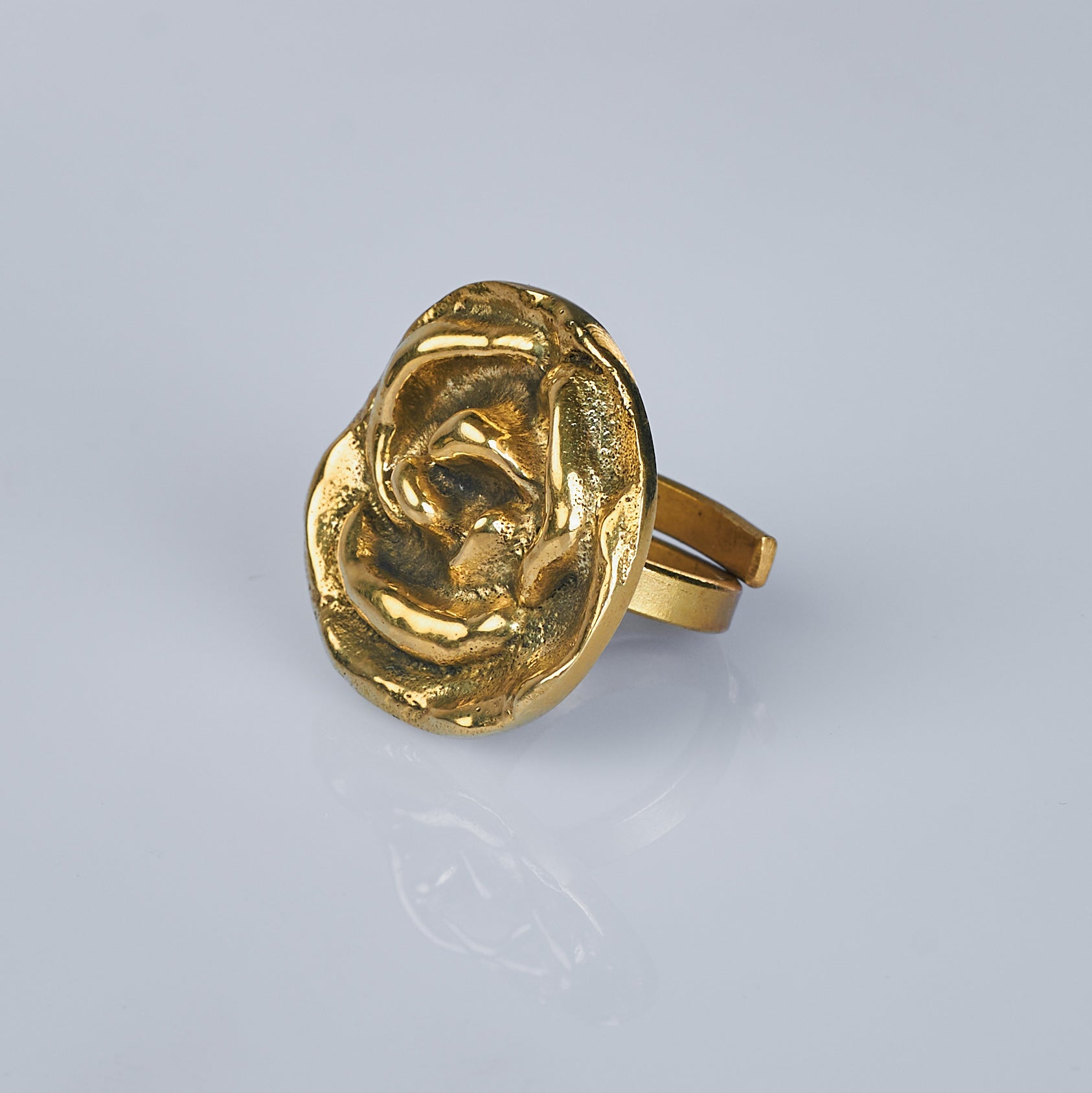 • Experience the divine radiance of our Upete ring. This stunning piece showcases intricate hand-carved details that reflect the skill and precision of our artisans. Crafted with love and dedication, this ring features captivating patterns that evoke a sense of timeless elegance and sophistication. With its warm golden tones and intricate craftsmanship, it is a true masterpiece that adds a touch of opulence to any ensemble.