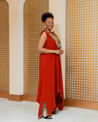 Enchoro Ankara Maxi Dress- Burnt Orange/Fire Brown