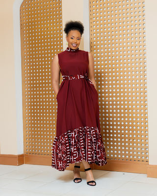 Kithini Ankara Maxi Dress- Maroon