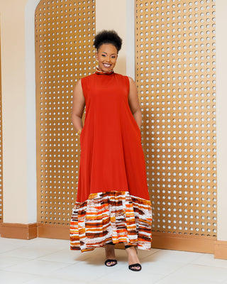 Kithini Ankara Maxi Dress- Burnt Orange/Fire Brown