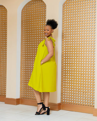 Emuny Ankara Knee Dress- Lime Green
