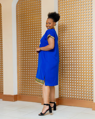 Emali Ankara Knee Dress- Royal Blue