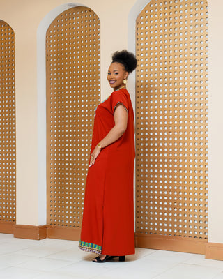 Emali Ankara Maxi Dress- Burnt Orange/Fire Brown