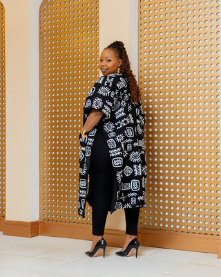 Ilmao Poncho Ankara - Black/White Print