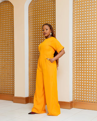 Kilome Ankara Jumpsuit - Orange & Brown Print