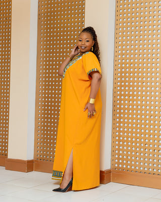 Enchoro Ankara Maxi Dress- Mustard Yellow