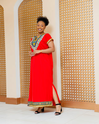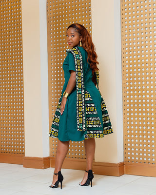 Emali Ankara Knee Dress- Burnt Orange/Fire Brown