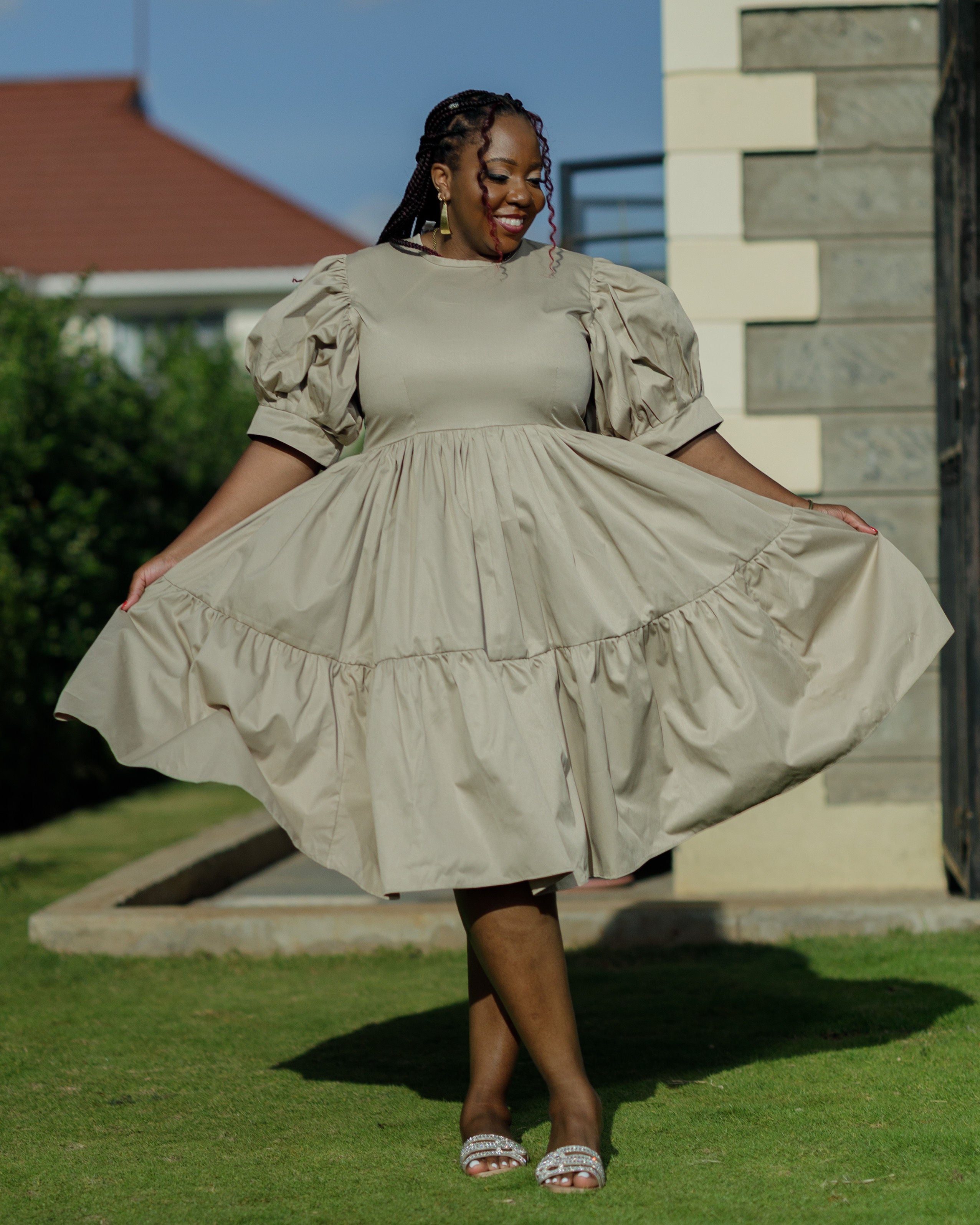 Kaseve Cotton Knee Dress - Nude