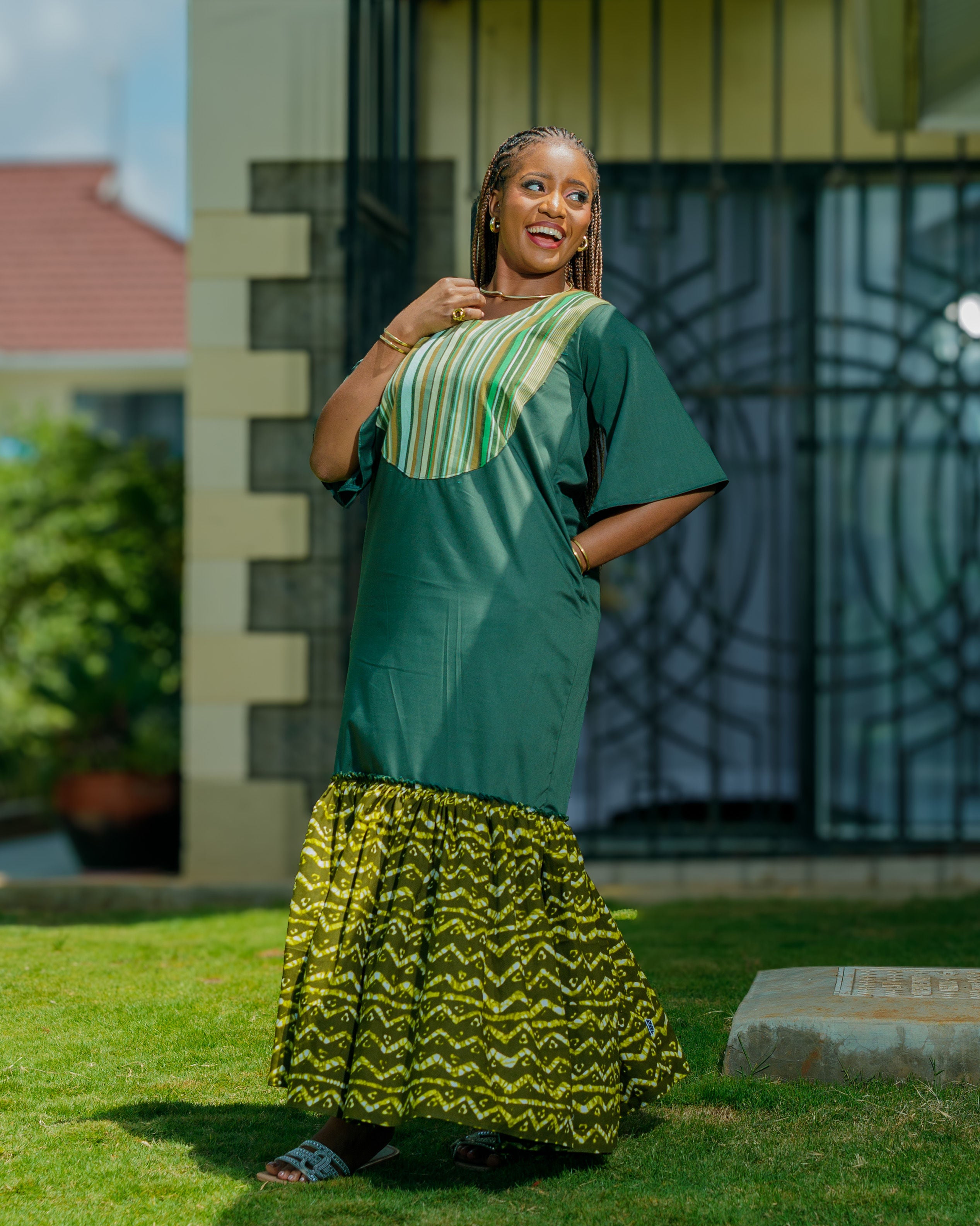 Kinyua Ankara Maxi Dress - Green