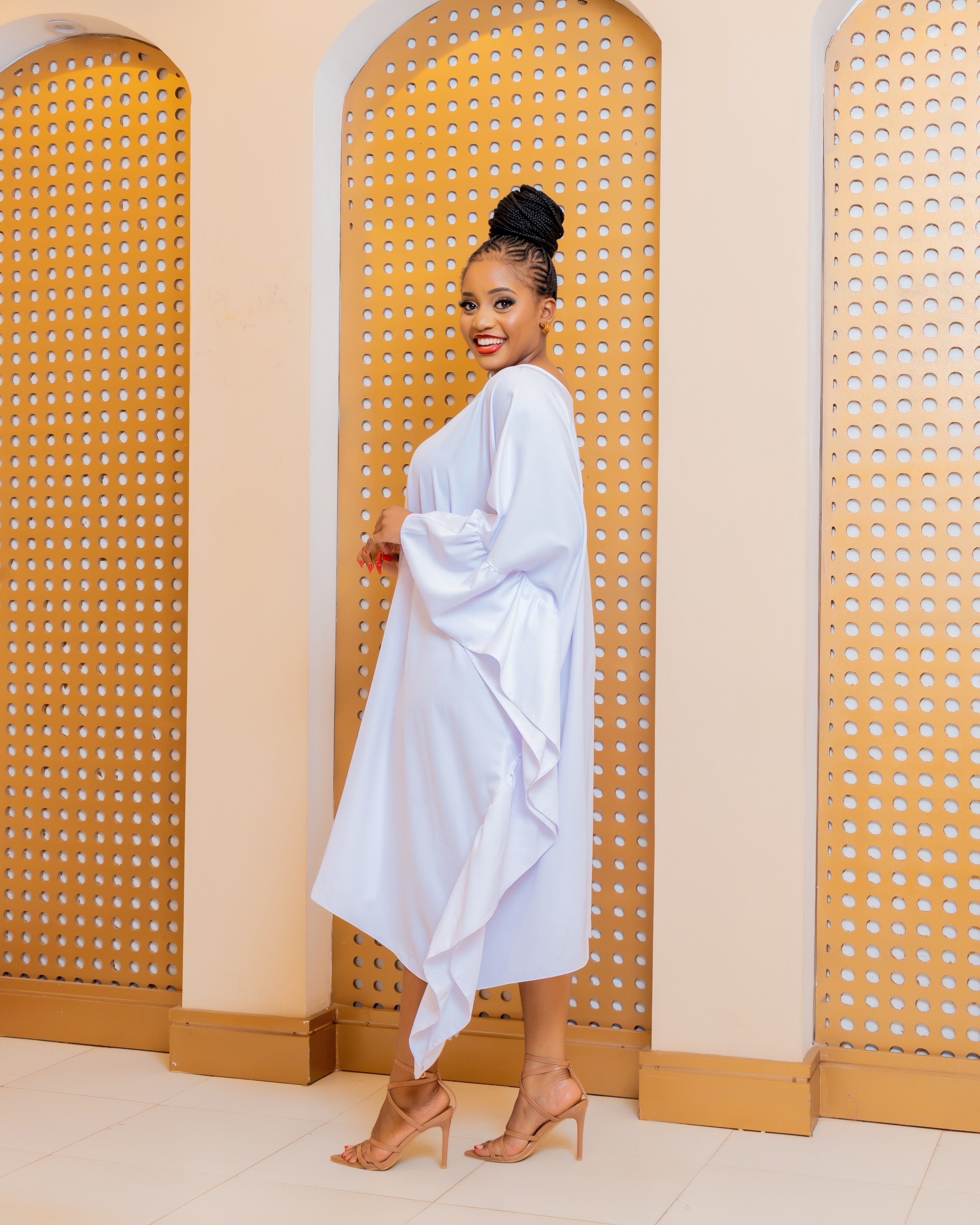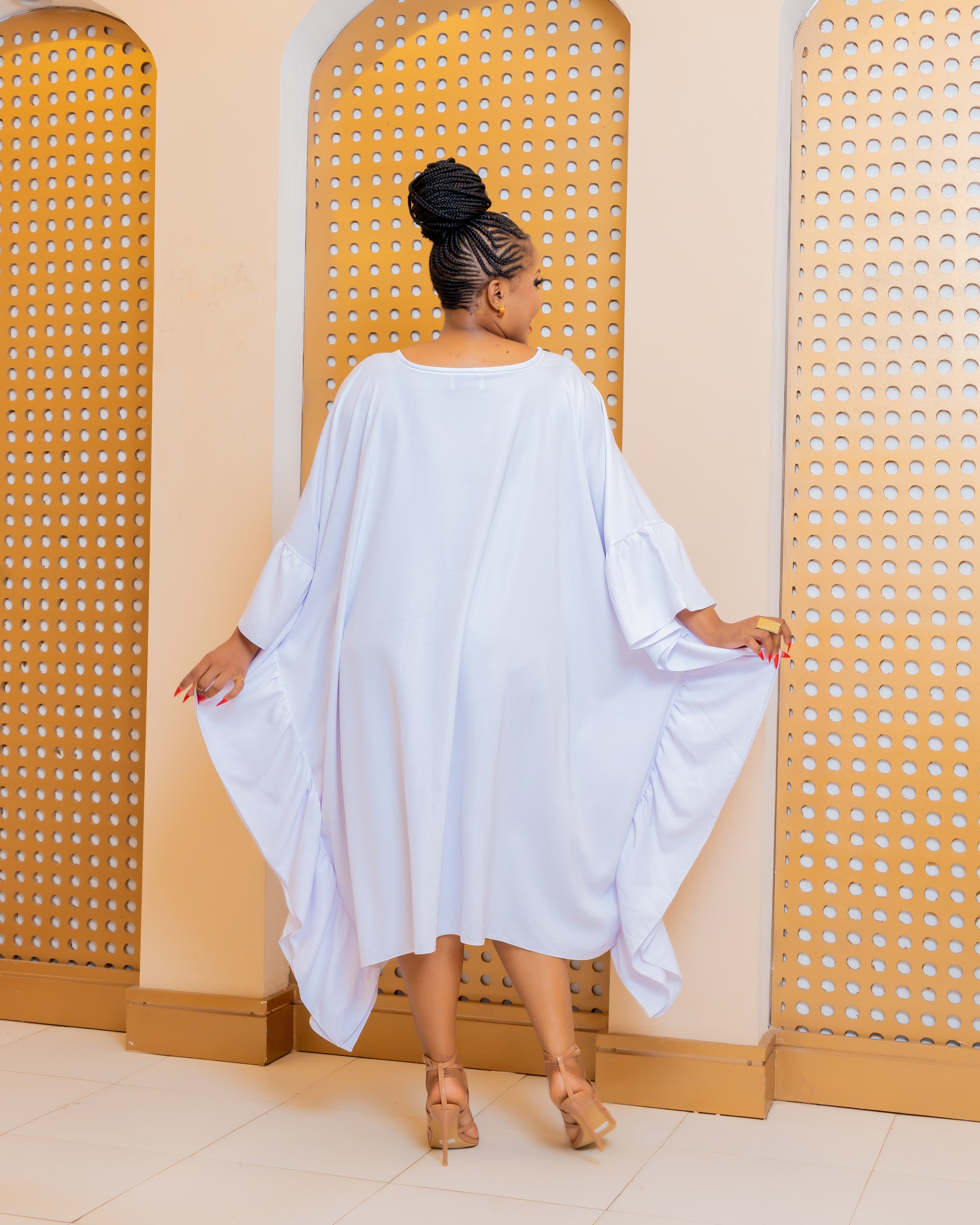 Claim your confidence in this rich Auntie Dress, Stand out from everyone else in this Black colour. Designed to flatter every body type and make you feel beautiful as you maneuver around the world. Pair with some heels and a matching bag and you’re good to go!