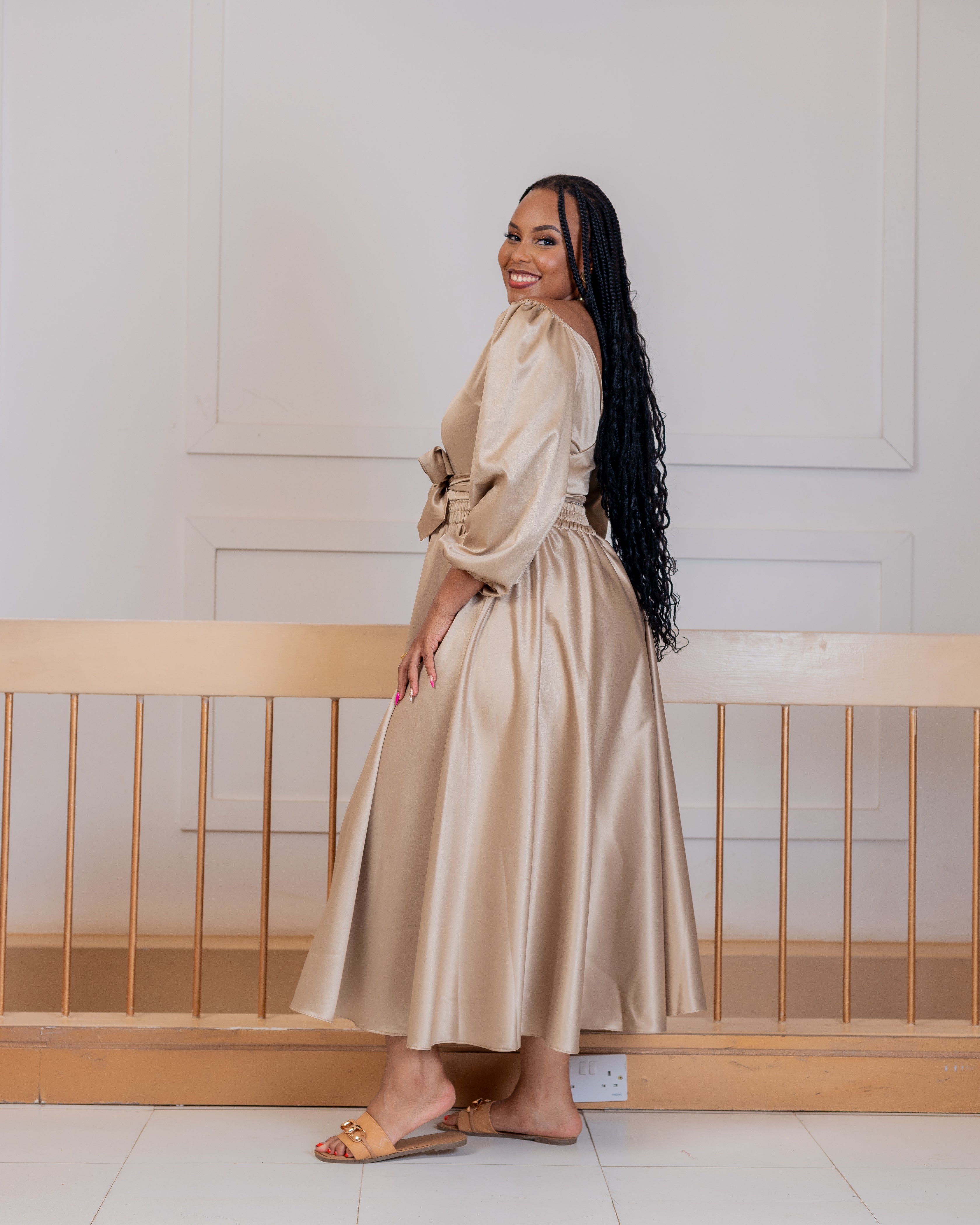 The Akila Dress can be worn two ways! Front to back or back to front. It is a blend of fun and classy, the fabric is heavy, high quality, smooth fabric, it features tieable straps at the sleeves for that stylish touch. The wrap style gives the dress a touch of elegance and allows for an adjustable fit. Pair it with heels to dress up or sandals for a casual day.