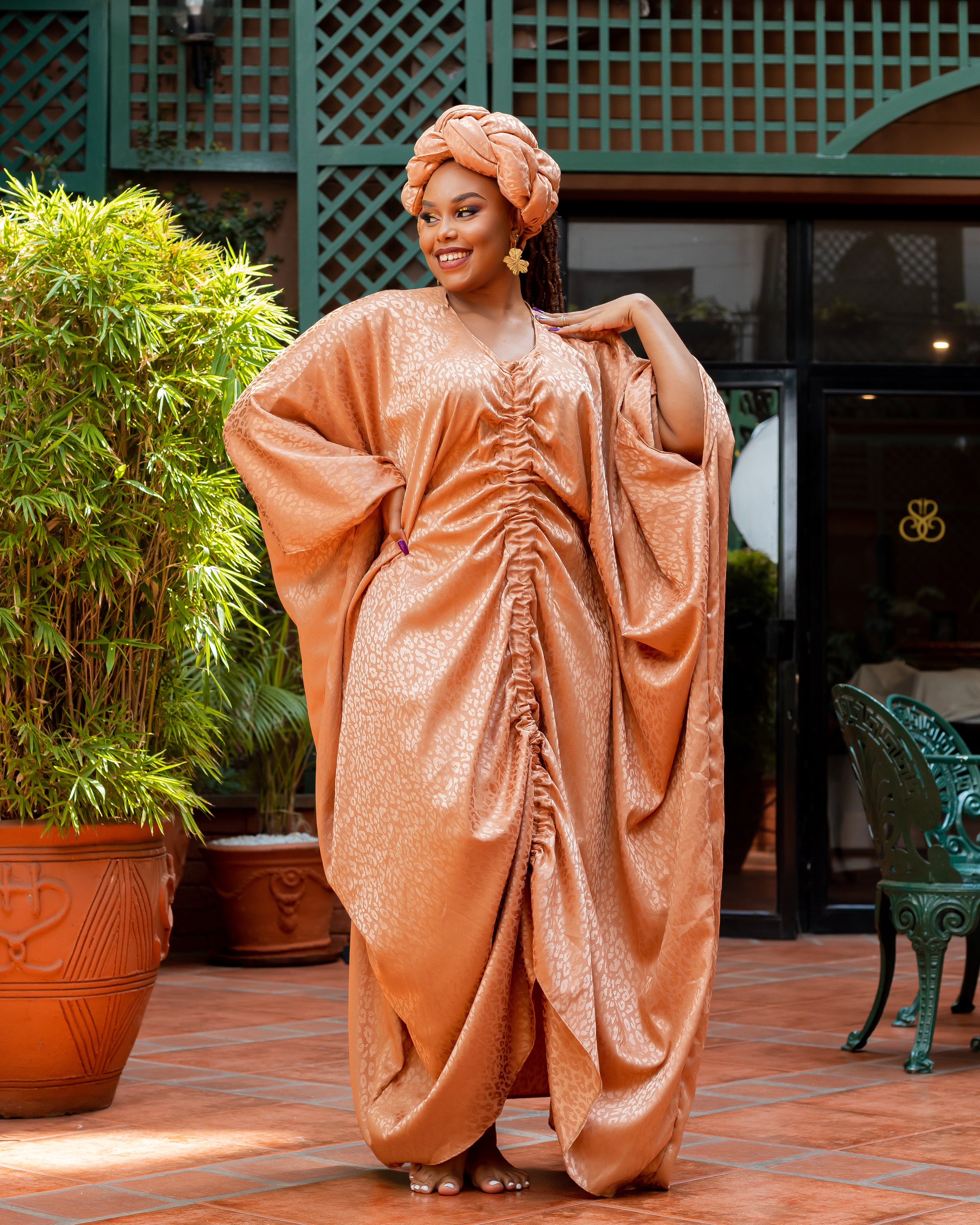• Stand out from everyone else in this Alinjur Kaftan dress. Designed to flatter every body type and make you feel beautiful as you are. Pair with some heels and a matching bag and you’re good to go! A dress that makes you look like the boss you already are.