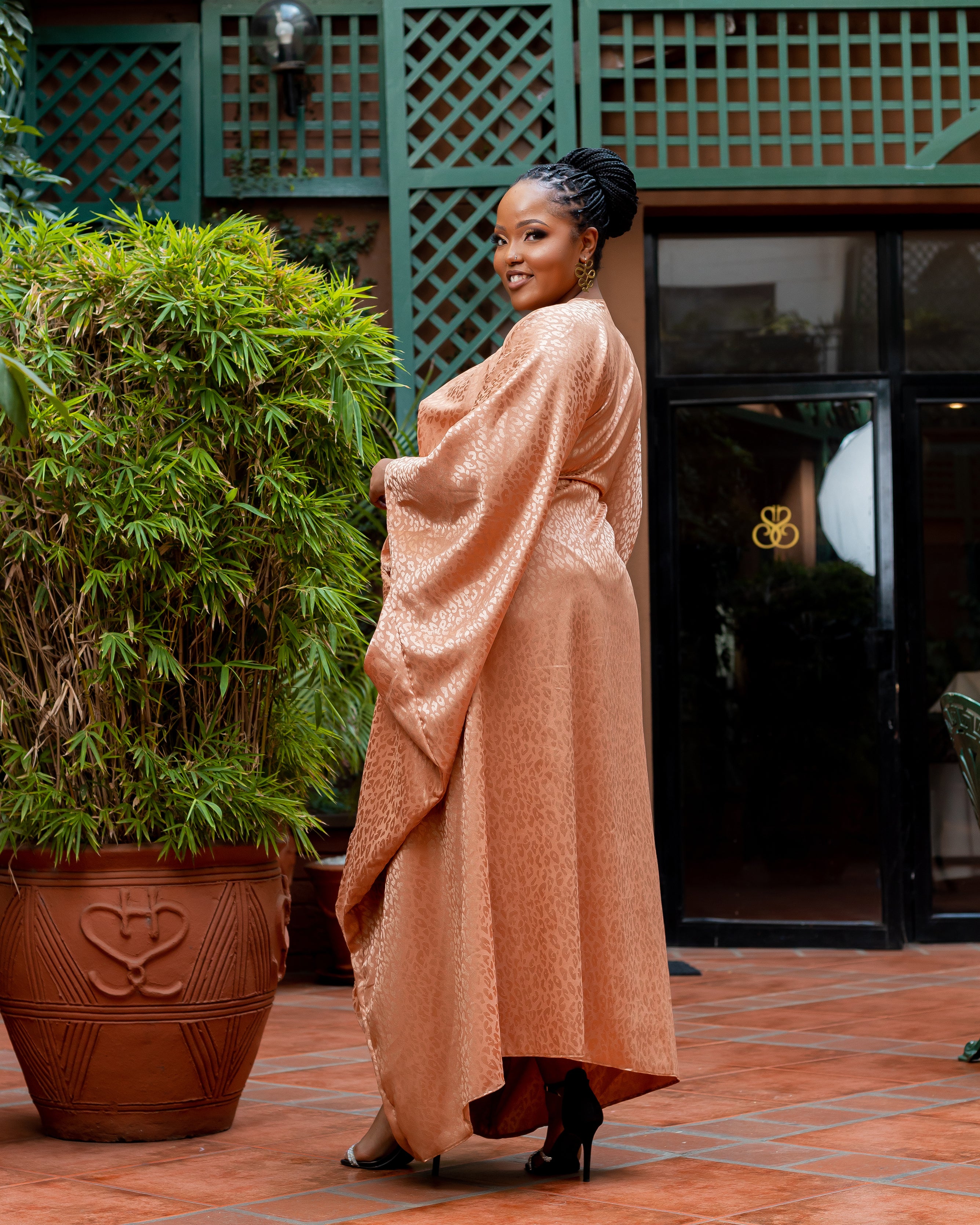 • Stand out from everyone else in this Alinjur Kaftan dress. Designed to flatter every body type and make you feel beautiful as you are. Pair with some heels and a matching bag and you’re good to go! A dress that makes you look like the boss you already are.