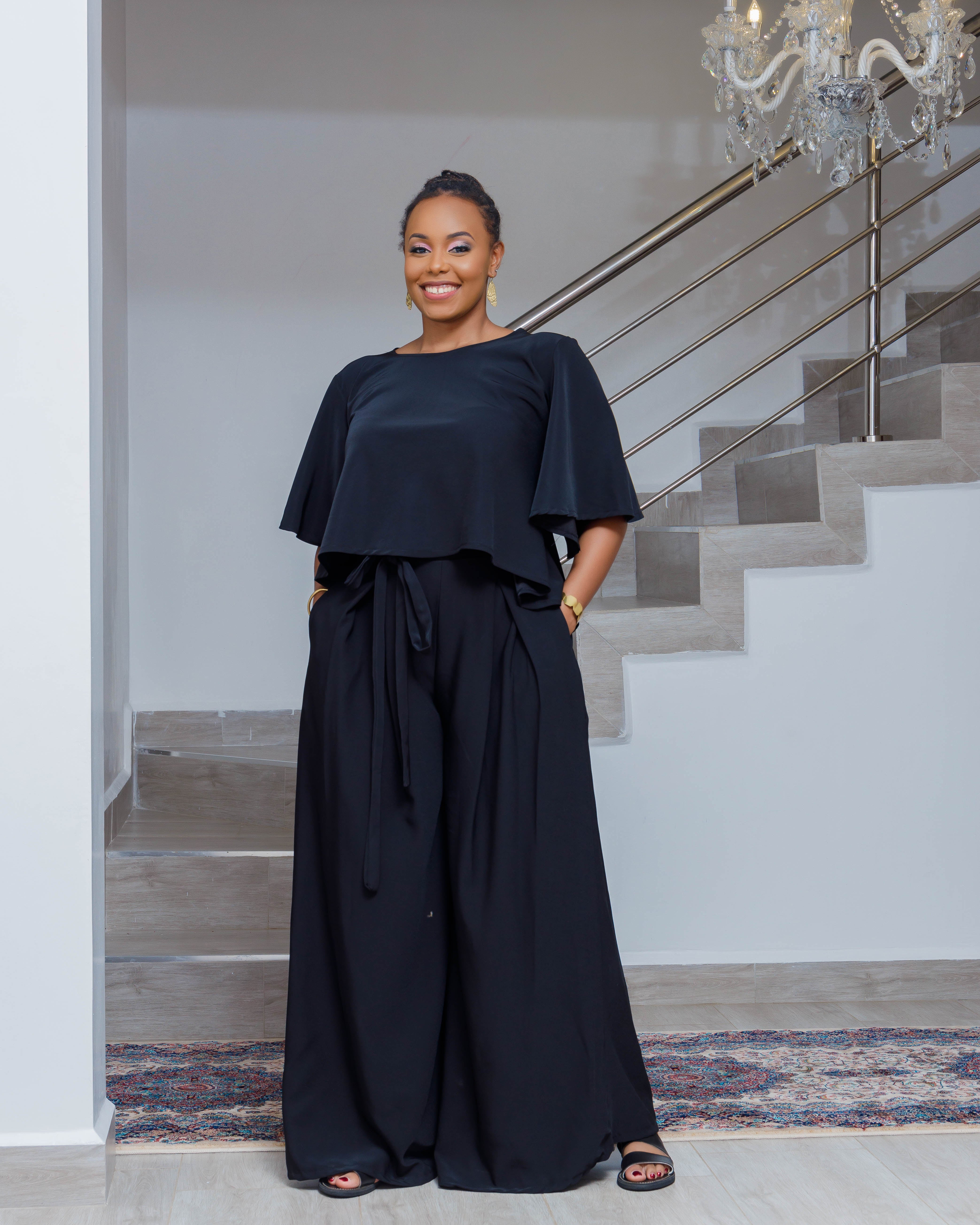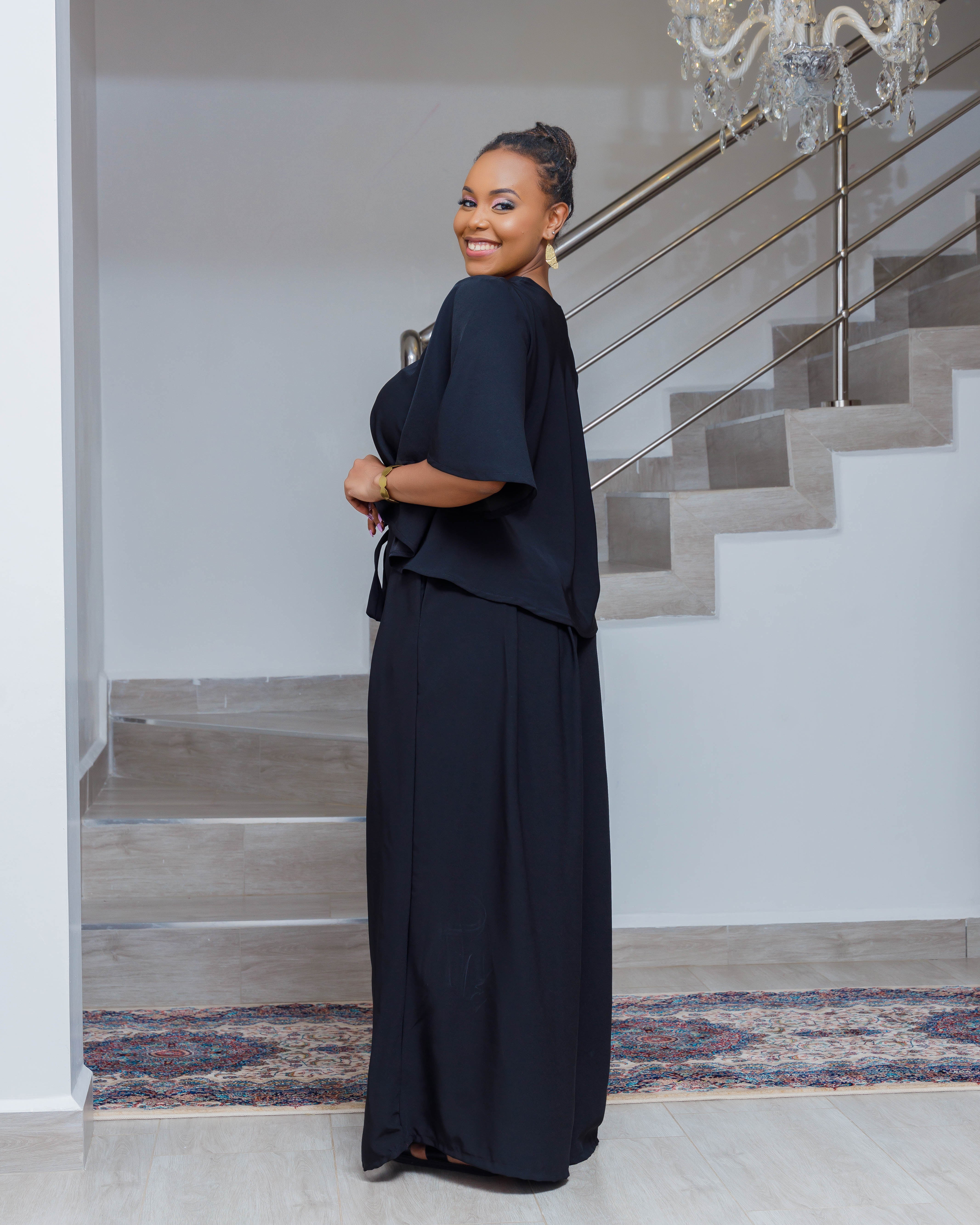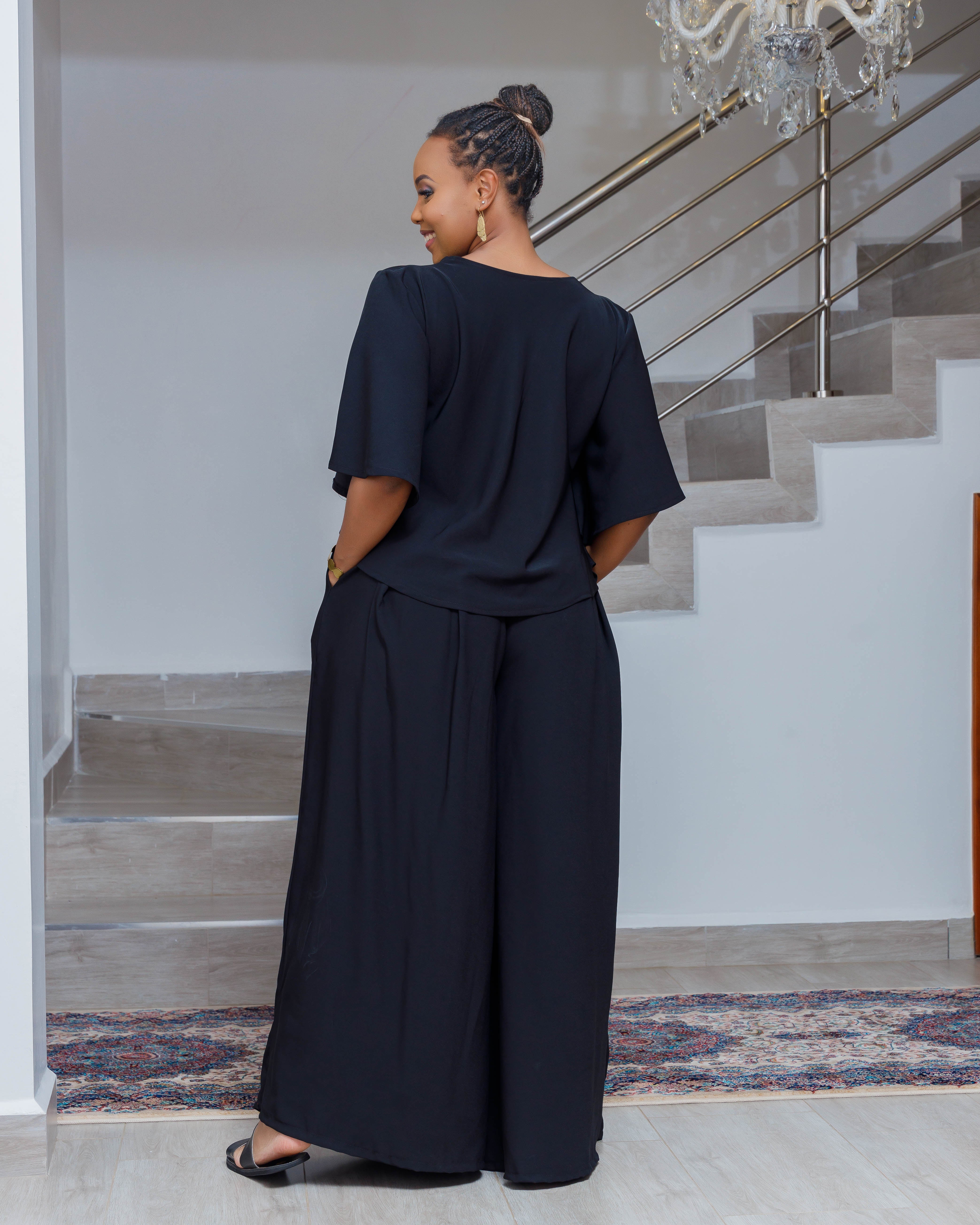 Asumbi Crop FULL Set (Palazzo + Crop Top) -Black