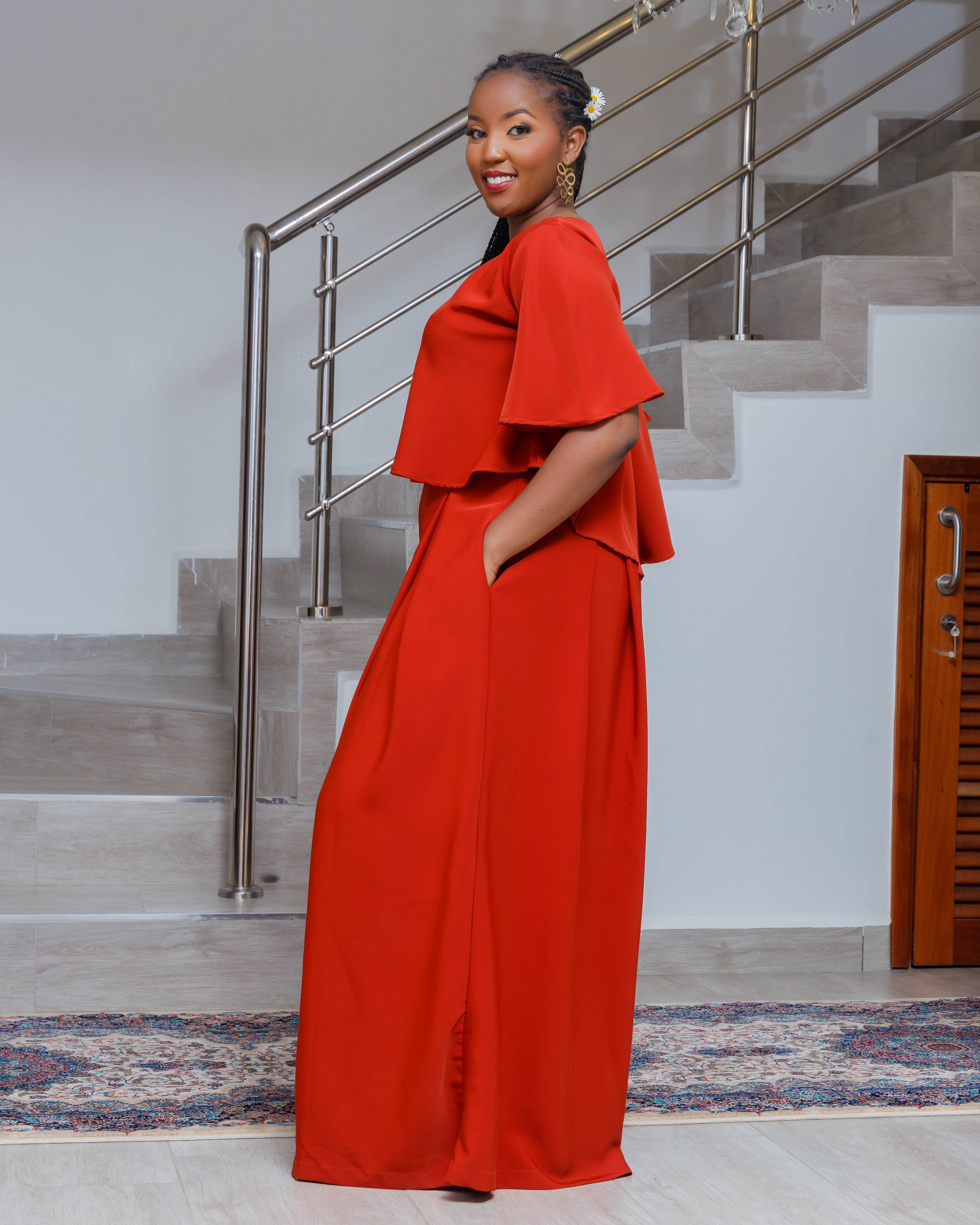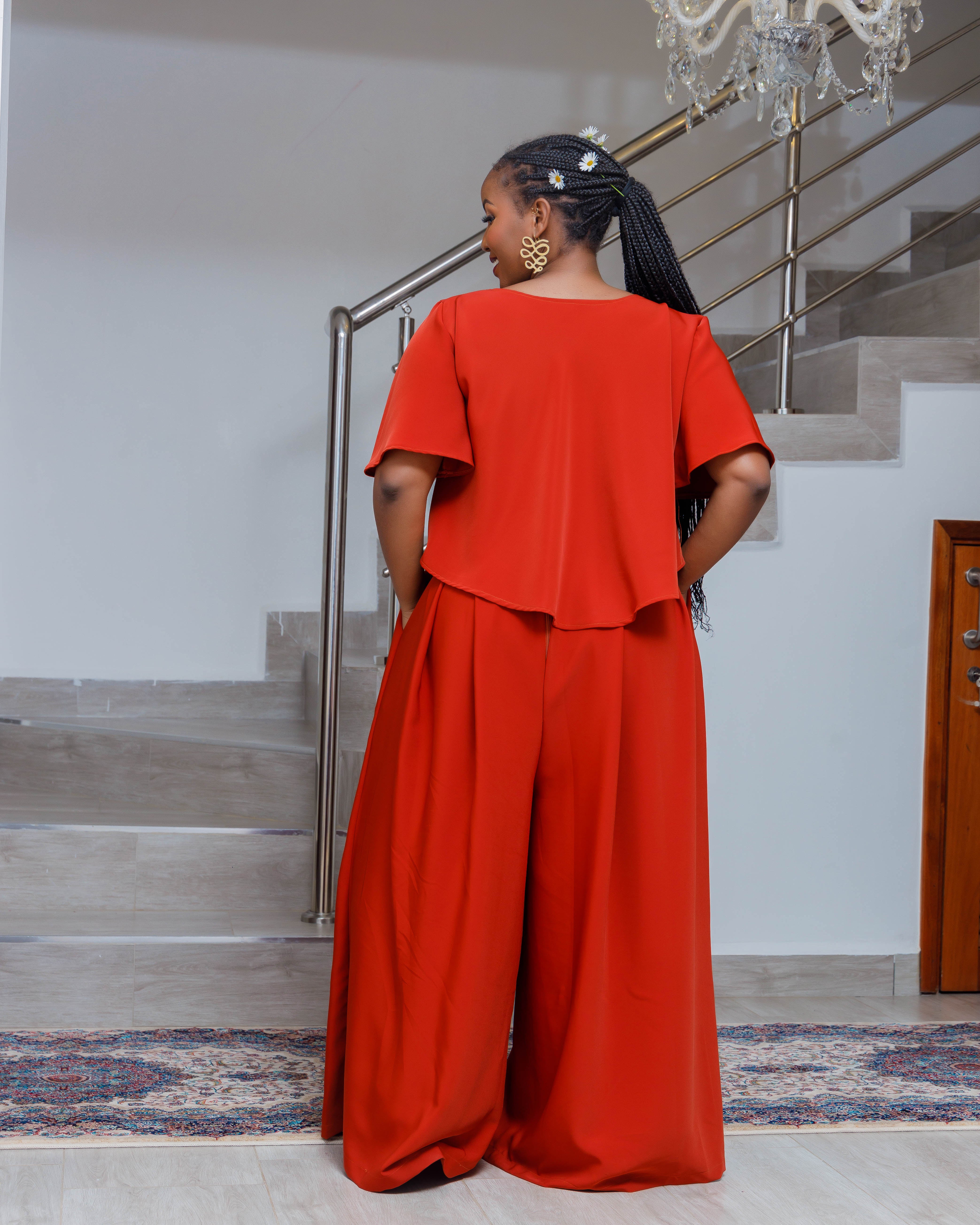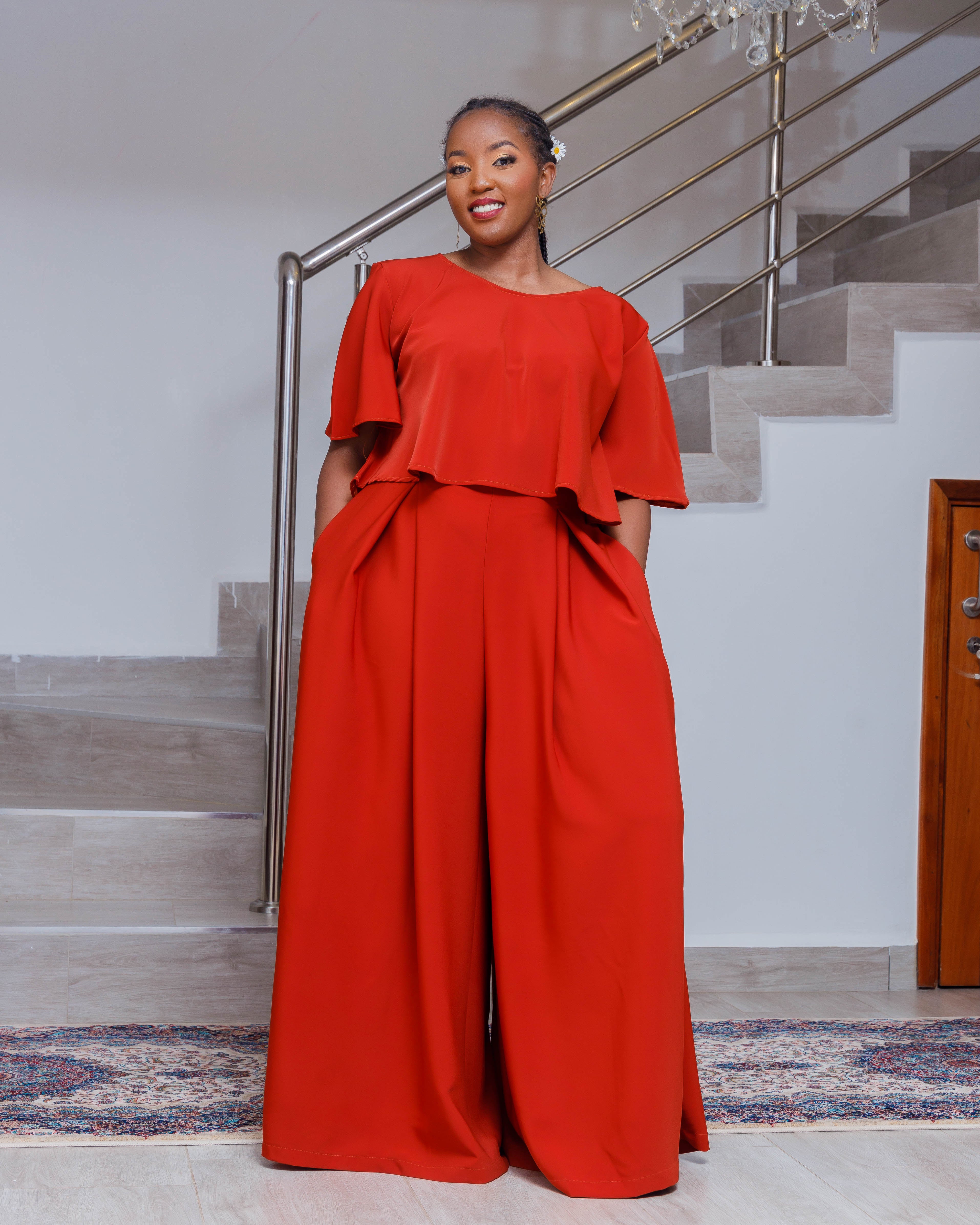 Asumbi Crop FULL Set (Palazzo + Crop Top) -Burnt Orange/ Fire Brown