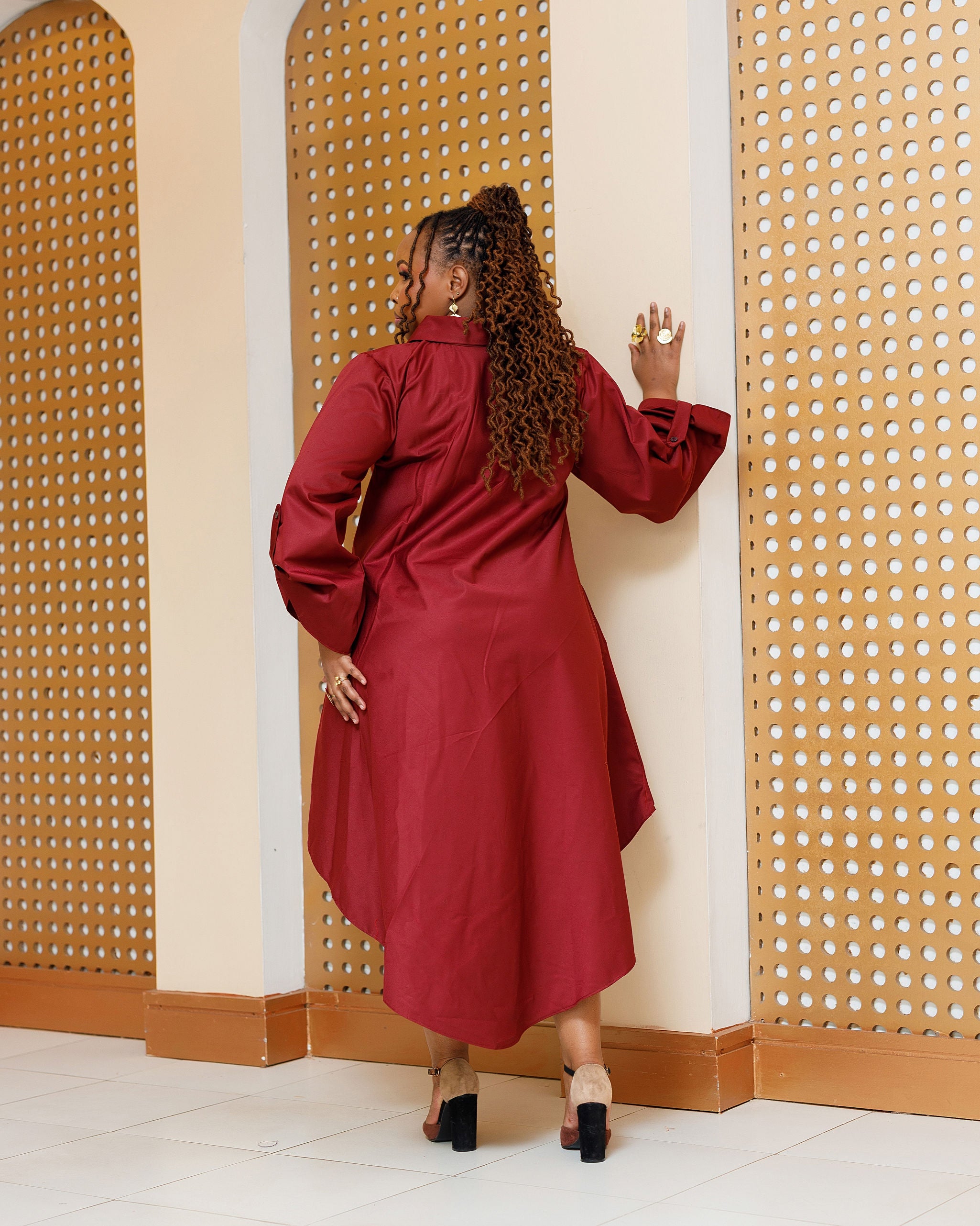 Balguda Cotton Dress - Burgundy