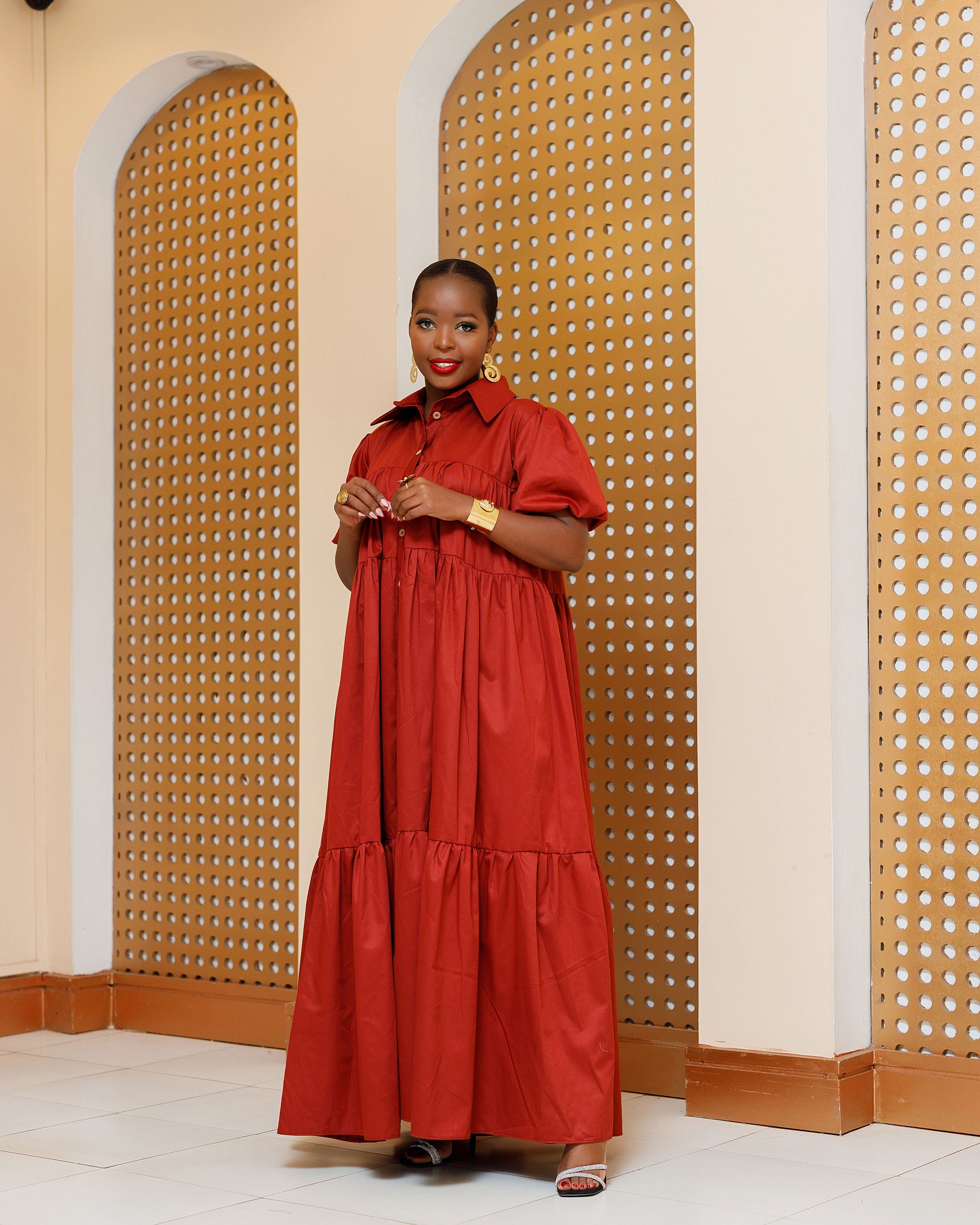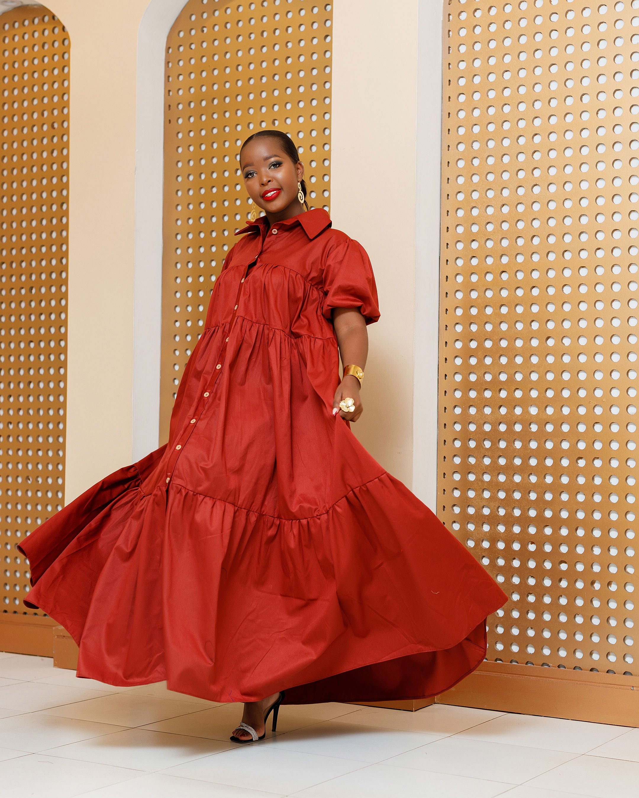 Banda Cotton Shirt Maxi Dress - Burgundy
