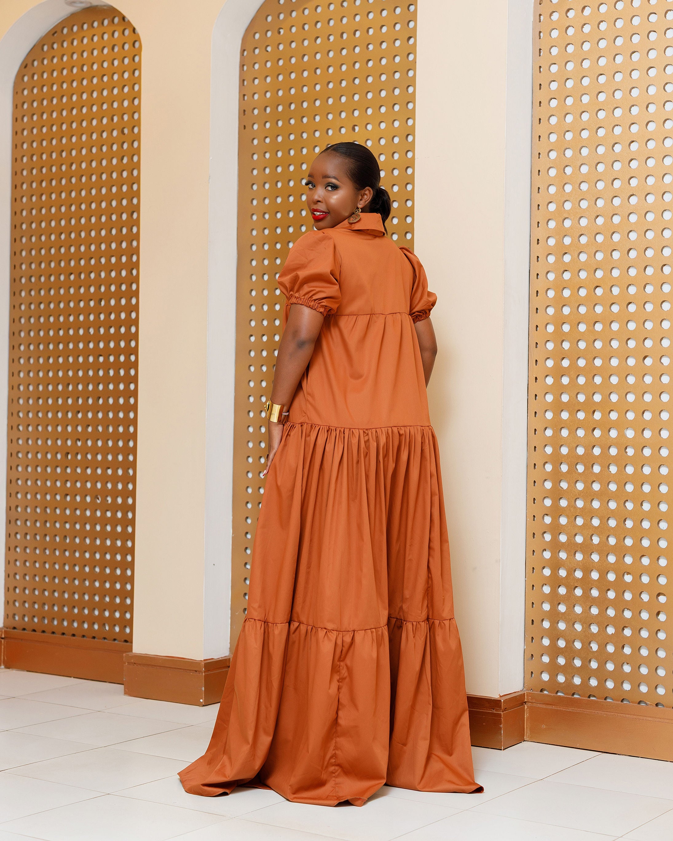 Banda Cotton Shirt Maxi Dress - Fire Brown