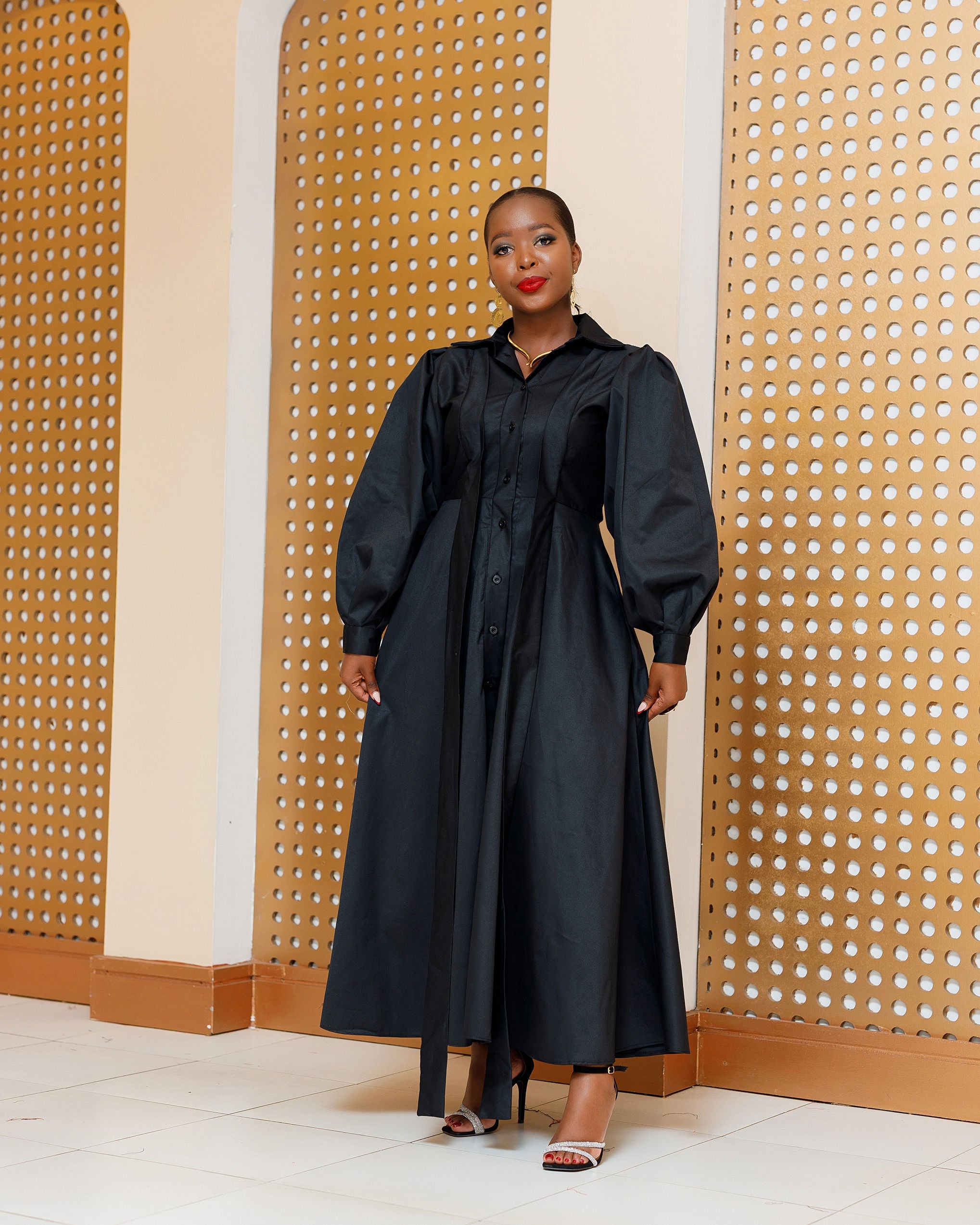 Barani Cotton Shirt Maxi Dress - Black